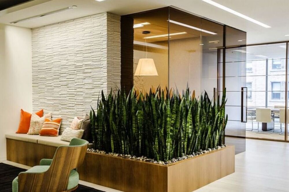 Если ваш выбор пал на живые растения, то выбирайте неприхотливые в уходе растения, такие как рапис, юкка, драцена или замиокулькас. Сухоцветы и искусственные цветы тоже хороший способ украсить зону приемной.