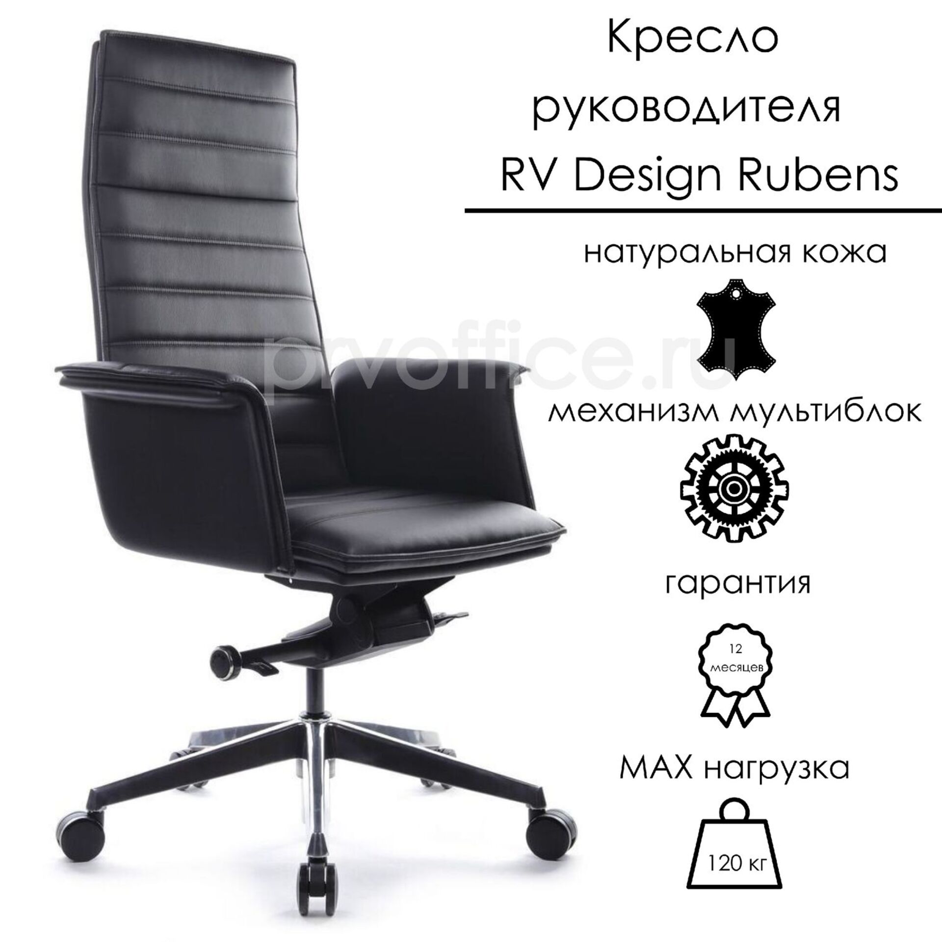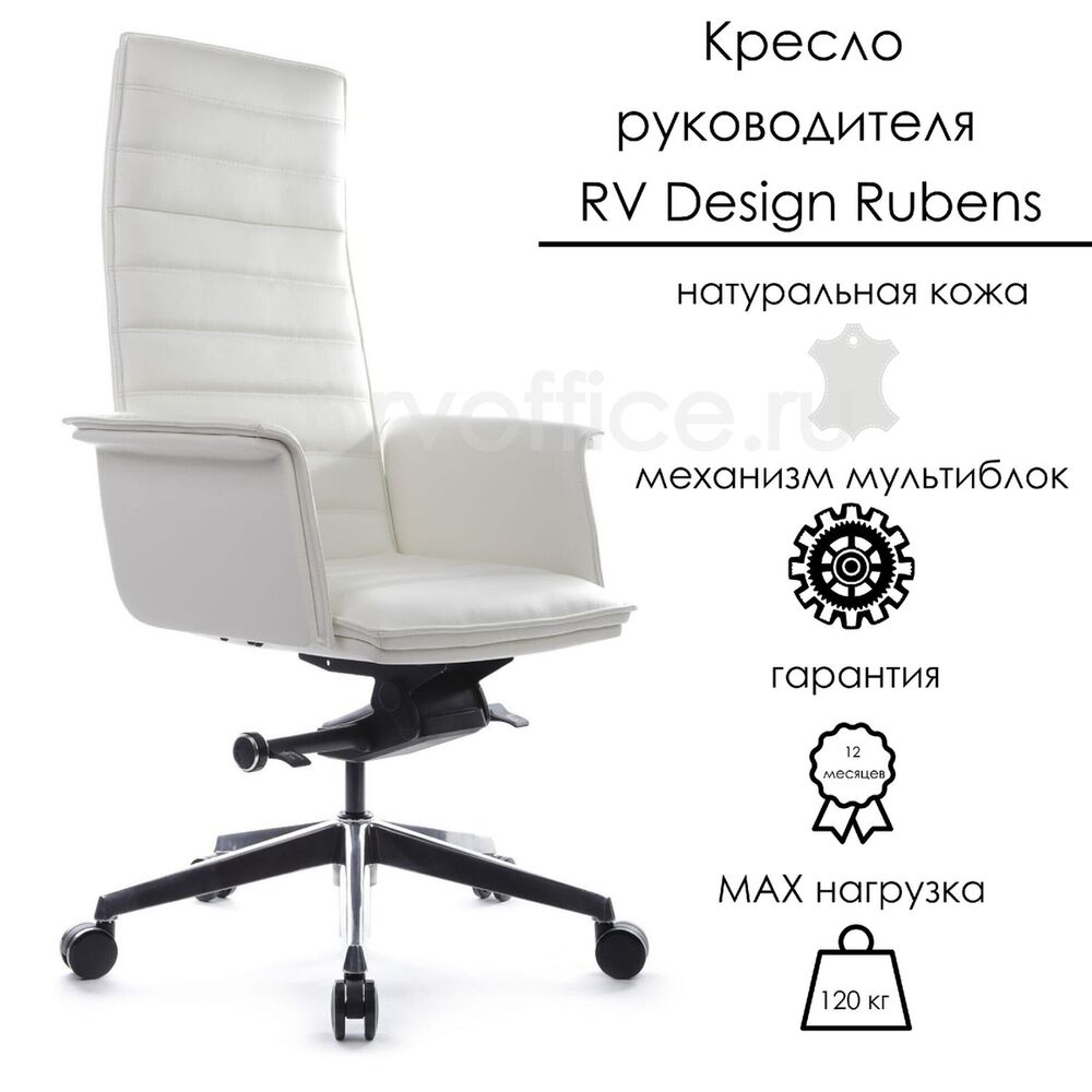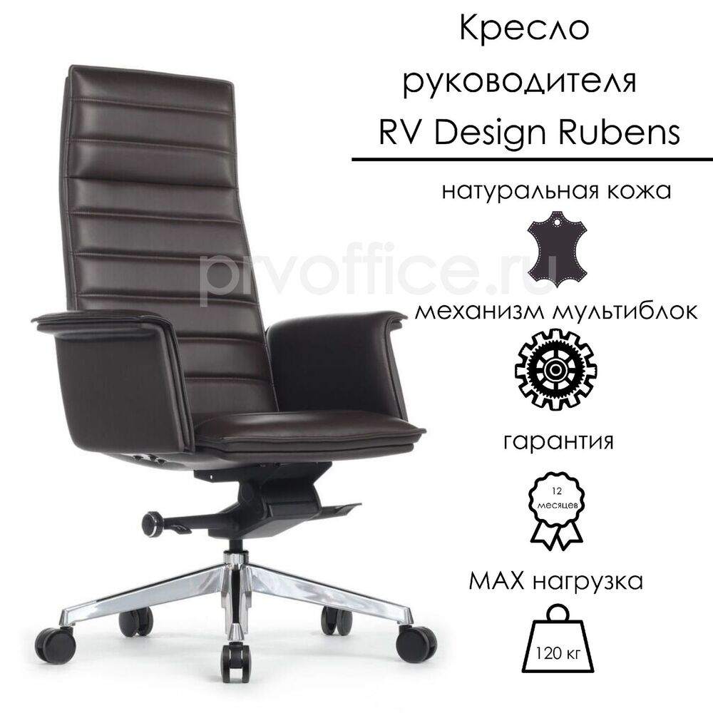Кресло руководителя премиум-класса RV Design Rubens (A1819-2) - сидите удобно, работайте эффективно и меняйте позицию с легкостью, как меняются мысли у представителей знака Близнецы. Натуральная кожа премиум-класса, изящная конструкция и лаконичный дизайн отлично впишутся в офис с любимым интерьером. Встроенный премиум-механизм мультиблок фиксирует угол наклона спинки в нескольких положениях (от 0° до 135°), позволяет активировать или блокировать раскачивания, регулирует степень жёсткости качания в зависимости от веса пользователя и оснащается устройством «антишок-эффект», которое позволяет креслу плавно вернуться в рабочее положение. Предельная нагрузка - 120 кг.