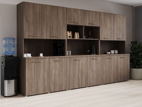 Мини-кухня – отличное дополнение любого офиса – от крупных компаний до фирм, занимающих минимальную площадь. Размеры такой мебели позволяют установить ее даже в ограниченном пространстве, причем функции кухни от этого не пострадают. Прочие преимущества офисных кухонь: