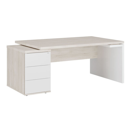Стол рабочий на опорной тумбе (левый) ZIO285114 ZIO28511421 Дуб шамони светлый/белый