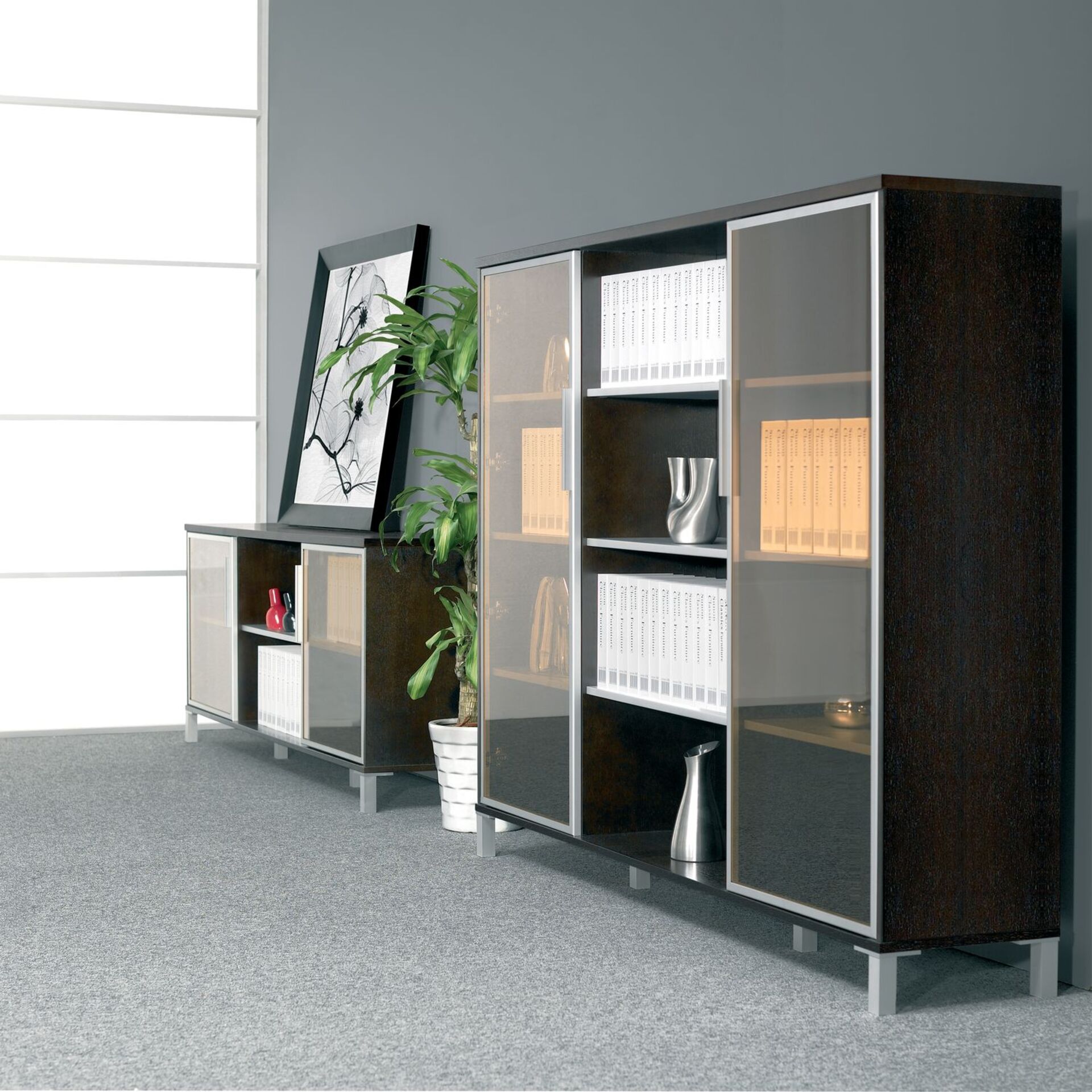 Кабинет директора Easy от производителя SUNON – это набор высококачественной мебели для оснащения офисов премиального класса. Меблировка выглядит стильно, строго и очень эффектно, во многом определяя успешность проводимых деловых переговоров, встреч, положительно влияет на имидж компании. Основные черты – четкая геометрия, лаконичность линий, а также темные оттенки, идеально соответствующие принципам классического интерьерного дизайна.