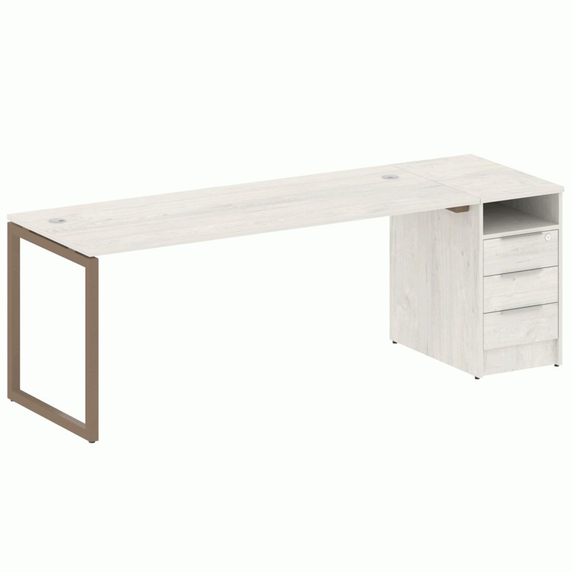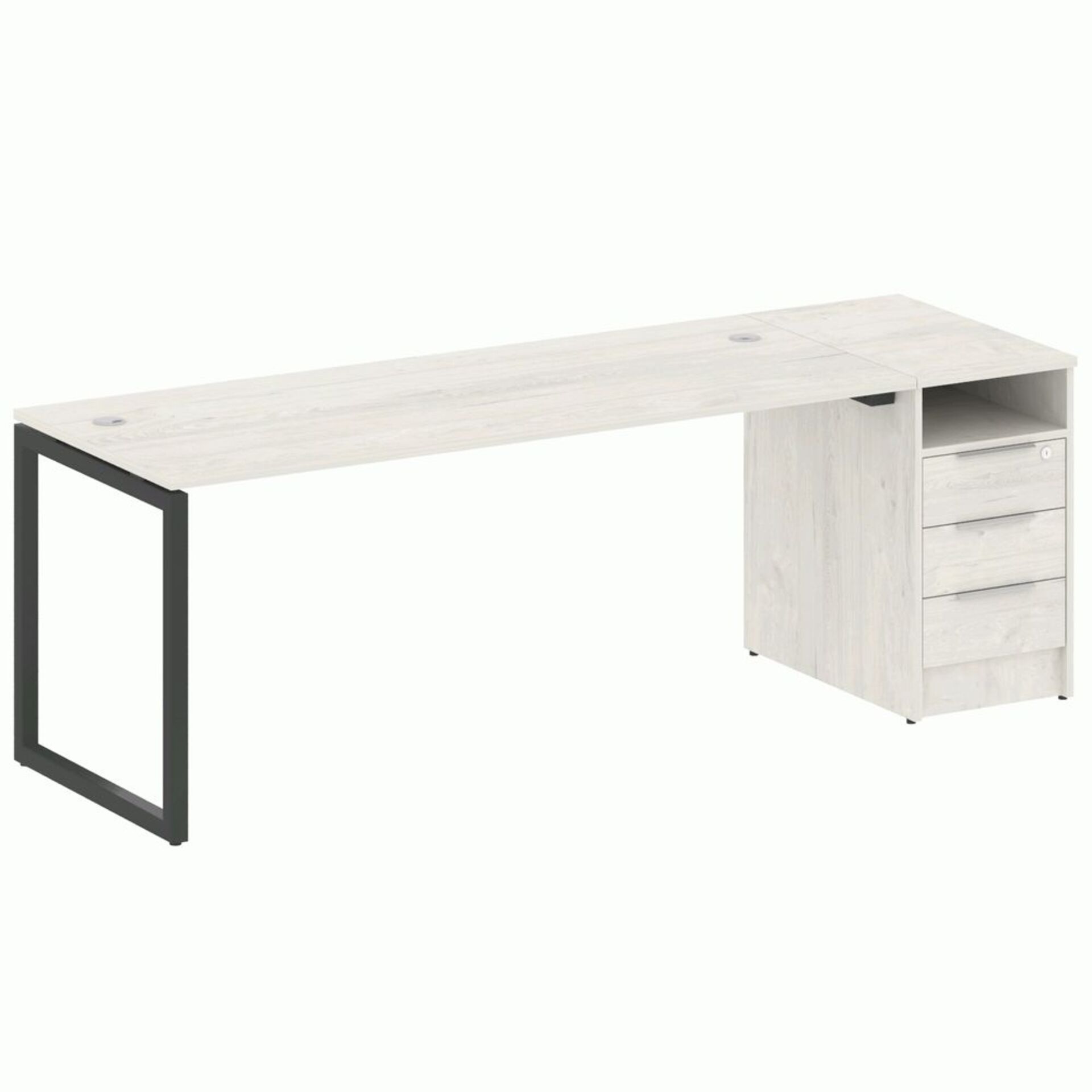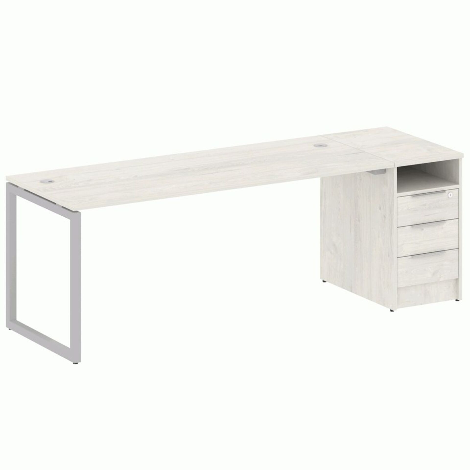 Стол рабочий на опорной двусоставной тумбе, с ящиками (метабокс), с замком 15СОД.1408