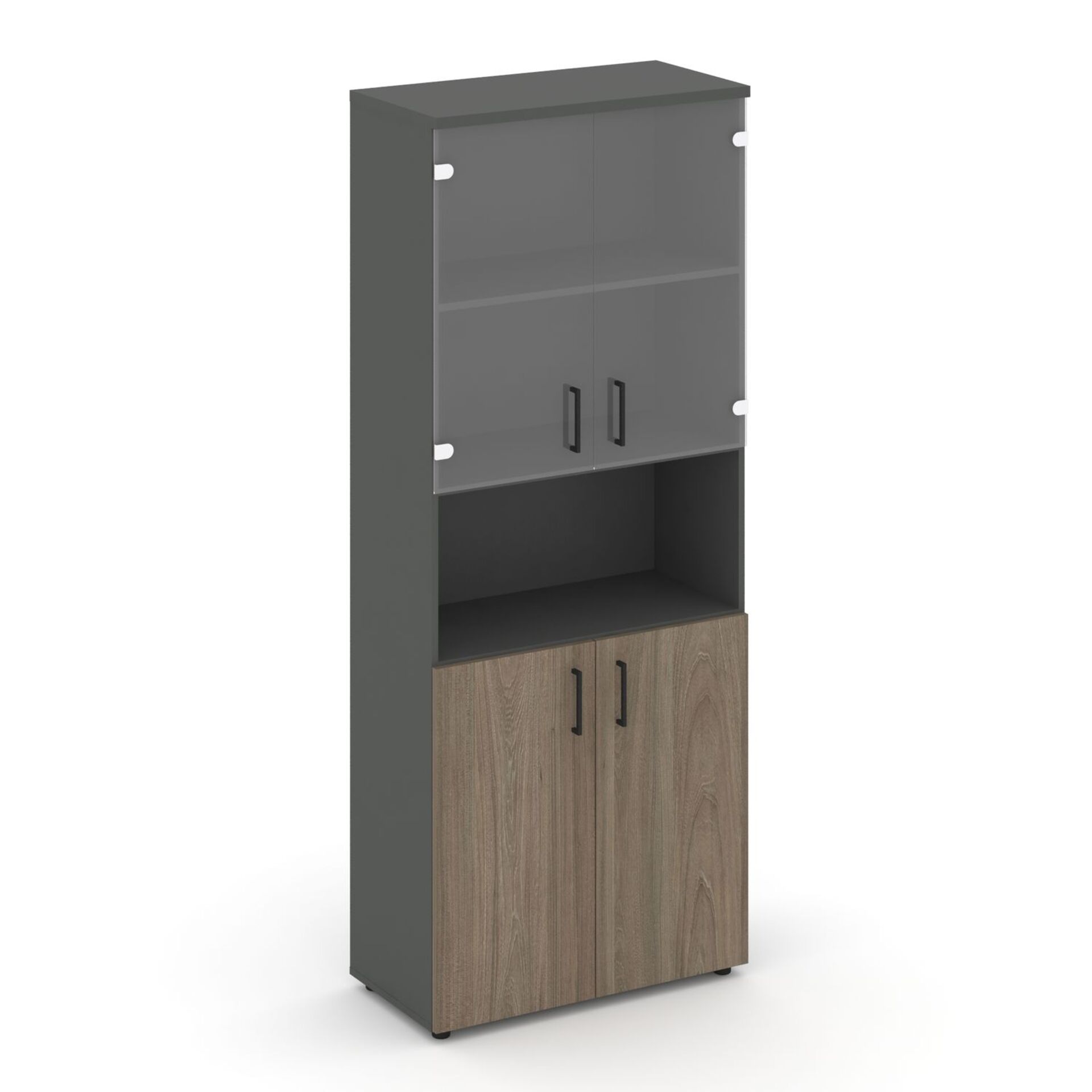 Шкаф высокий широкий (2 низких фасада ЛДСП + 2 низких фасада стекло прозрачное) SN.STS.E-105