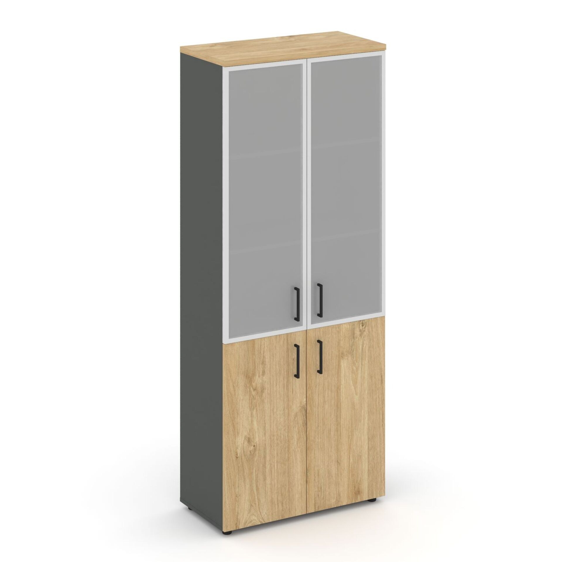 Шкаф высокий широкий (2 низких фасада ЛДСП + 2 средних фасада стекло сатин в раме) SN.STS.E-103