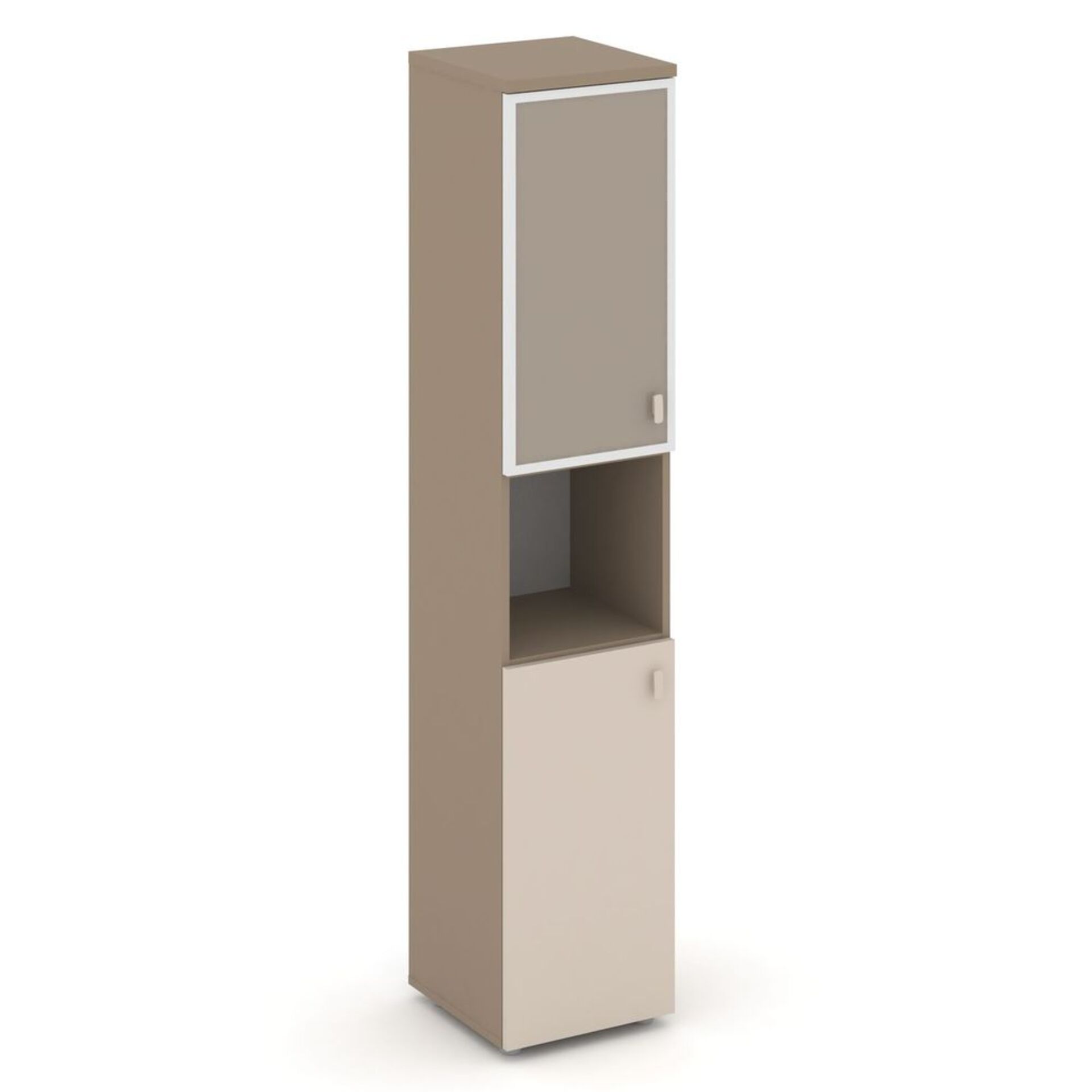 Шкаф высокий узкий левый (1 низкий фасад ЛДСП+1 низкий фасад стекло лакобель в раме) ES.SU-1.4R (L) U