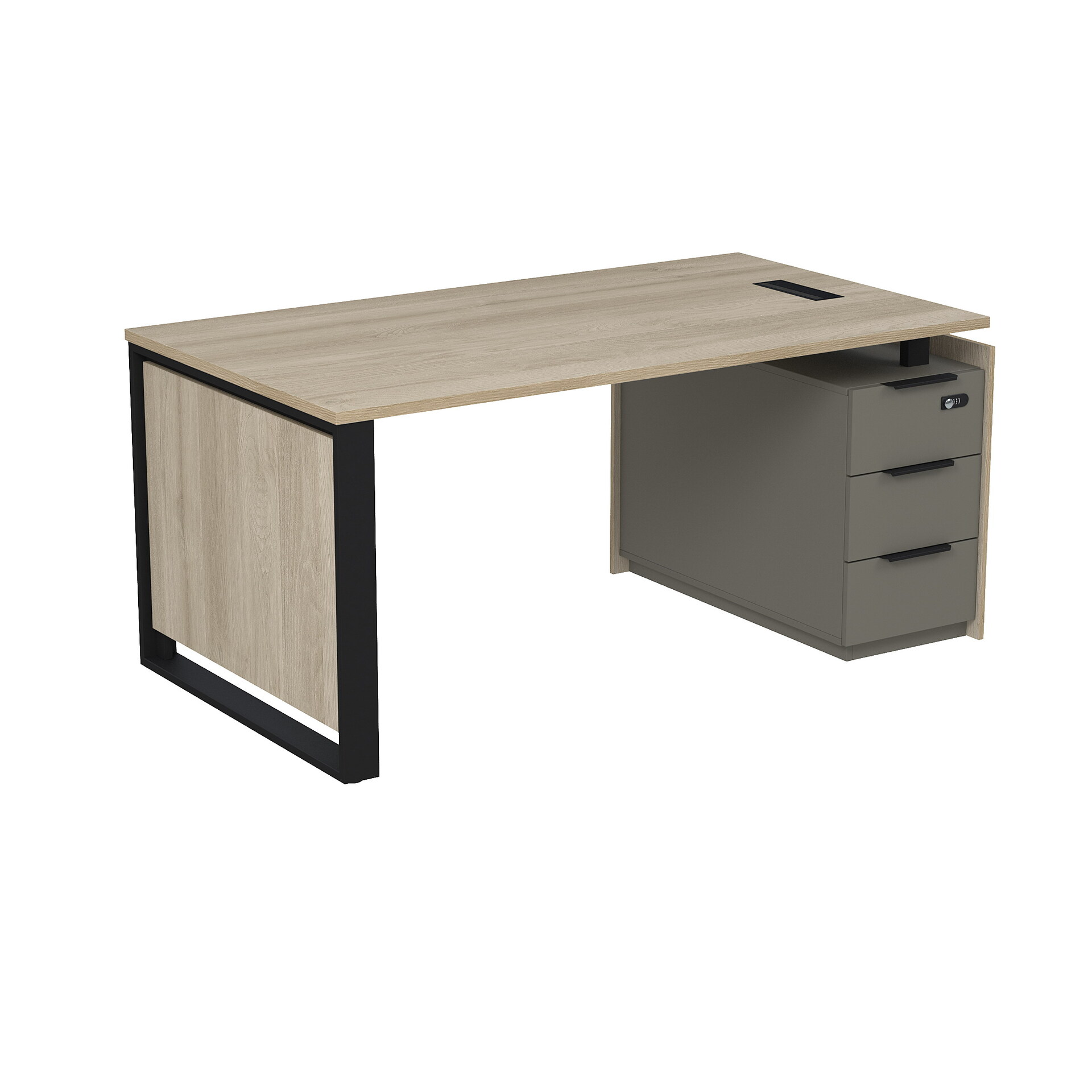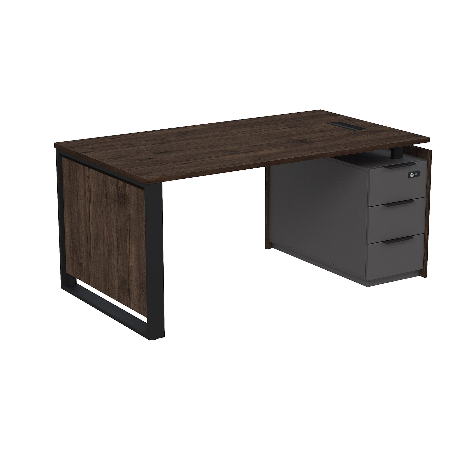 Стол рабочий с люч, на опорной угловой тумбе, с ящиками (метабокс), с код замком 15СОЛУ-КЗ.1609