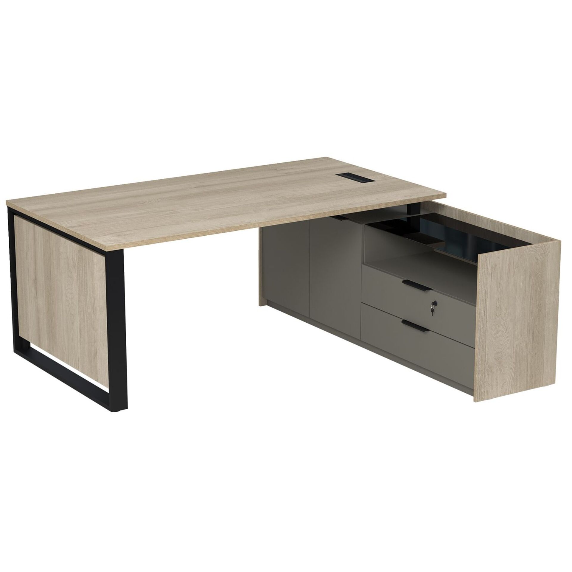 Стол рабочий с лючком, на опорной двусоставной тумбе 15СОЛД.2010