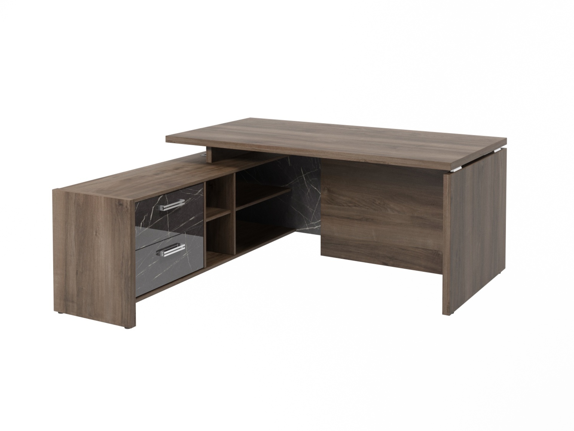 Стол руководителя с опорной тумбой (левый) (Фурнитура INOX) FI-117L.GG