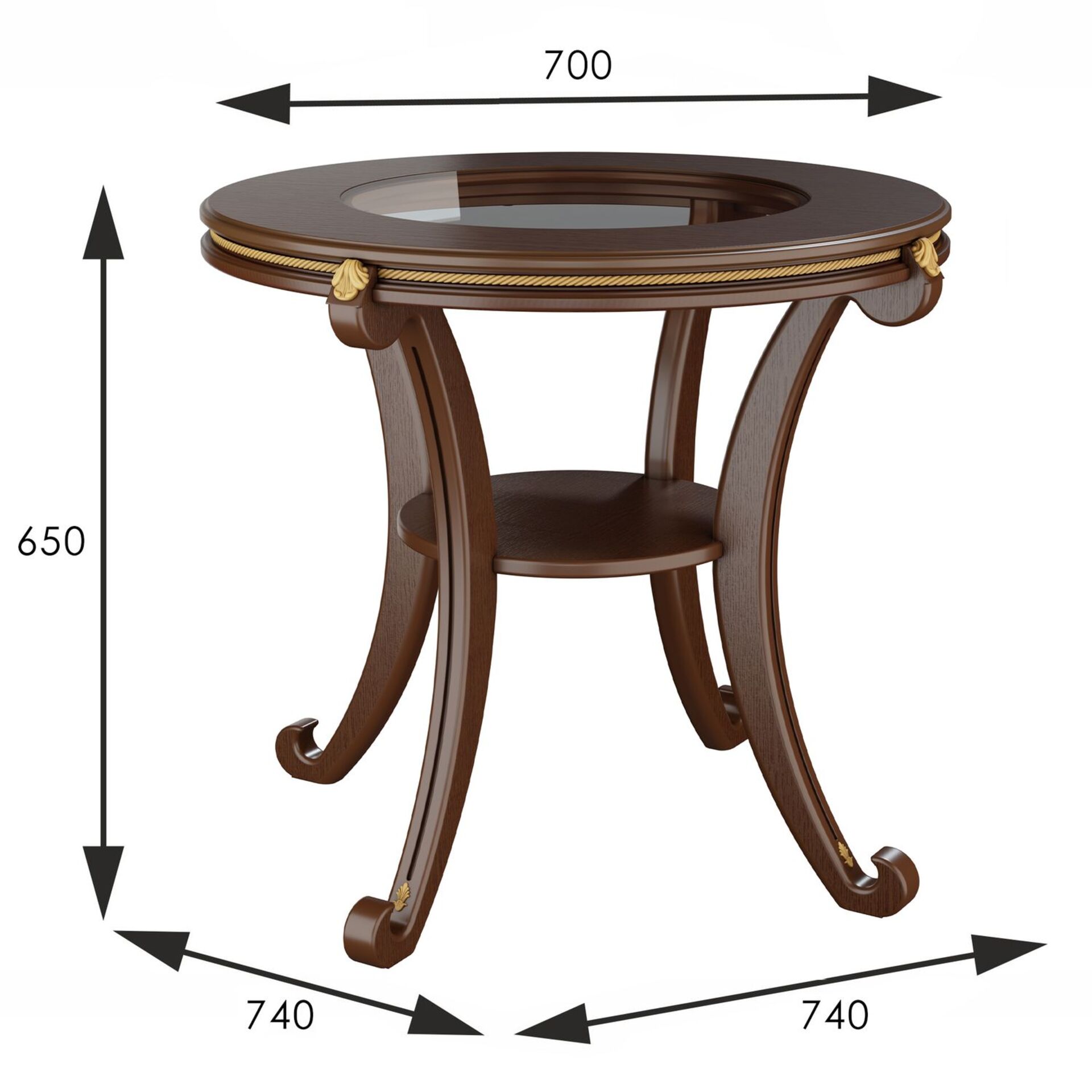 Размеры (ШхГхВ): 74x74x65 см.