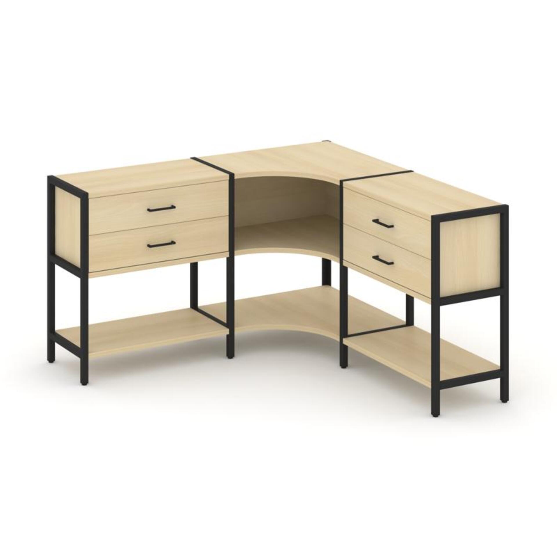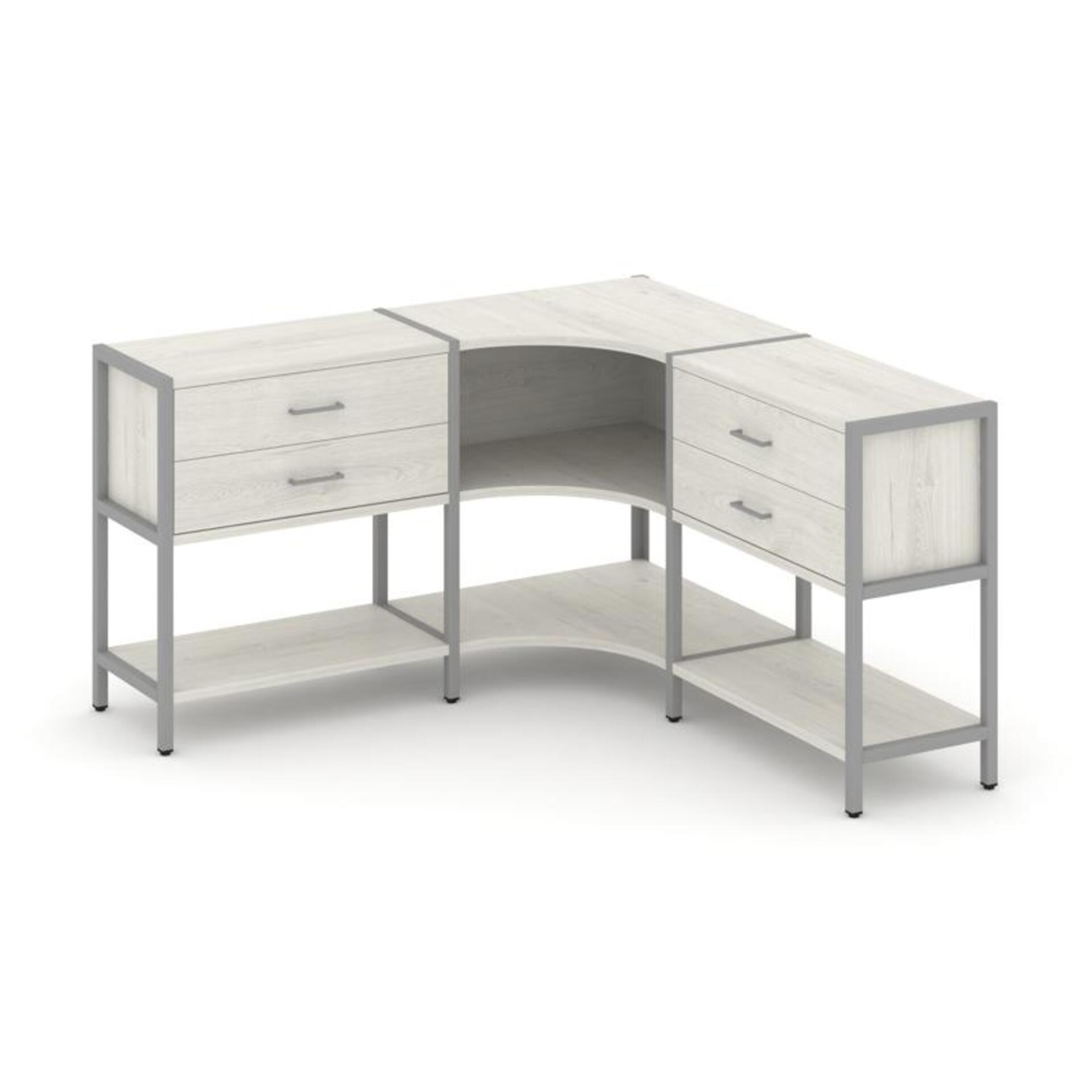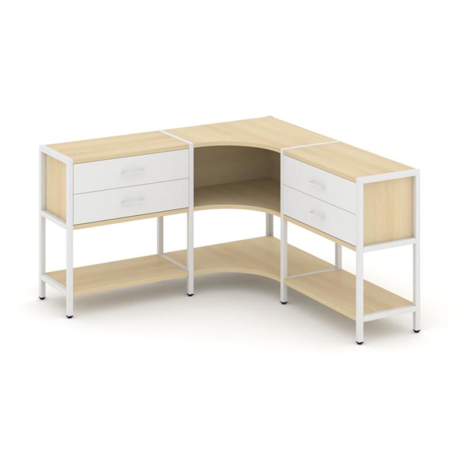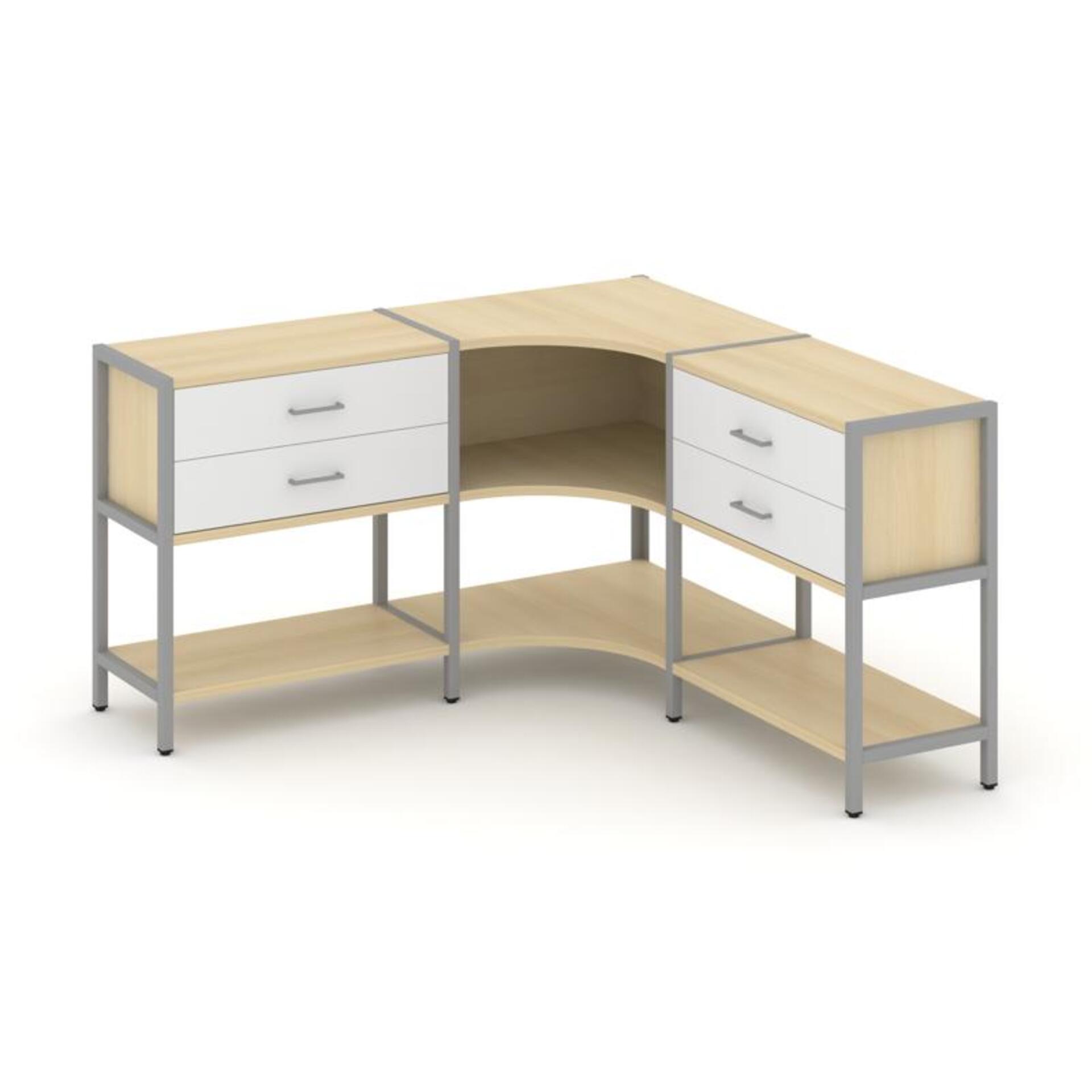 Трехсекционный угловой стеллаж двухярусный с ящиками SN.STMU-231