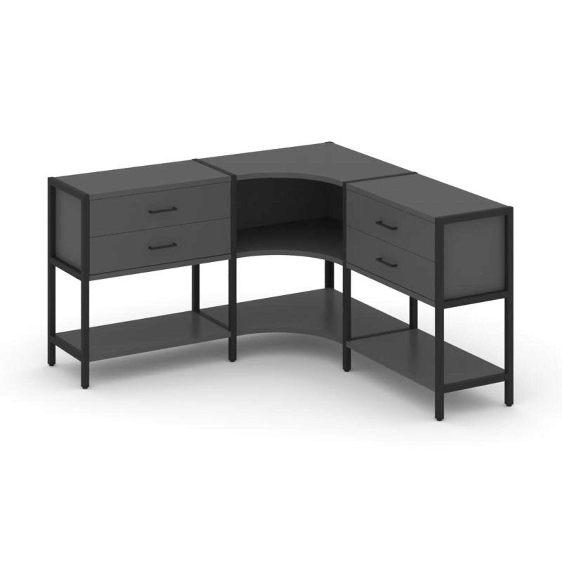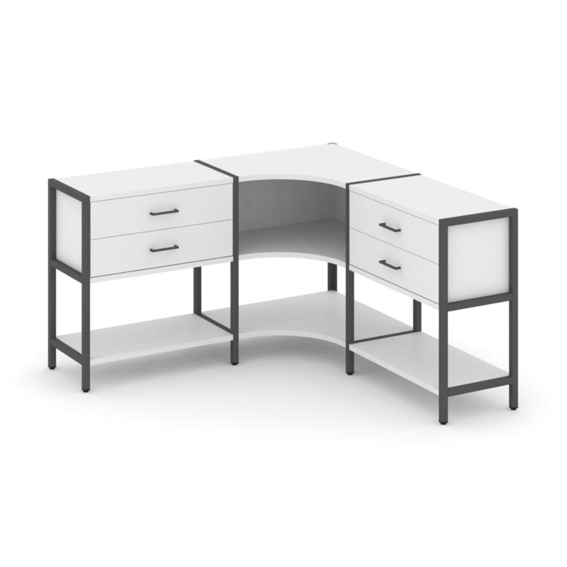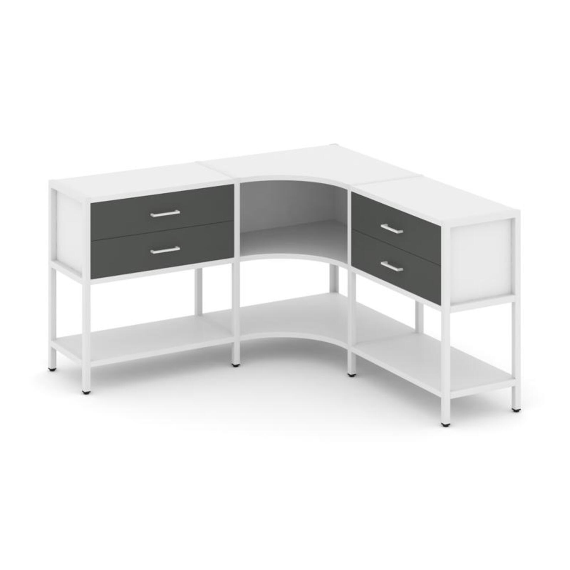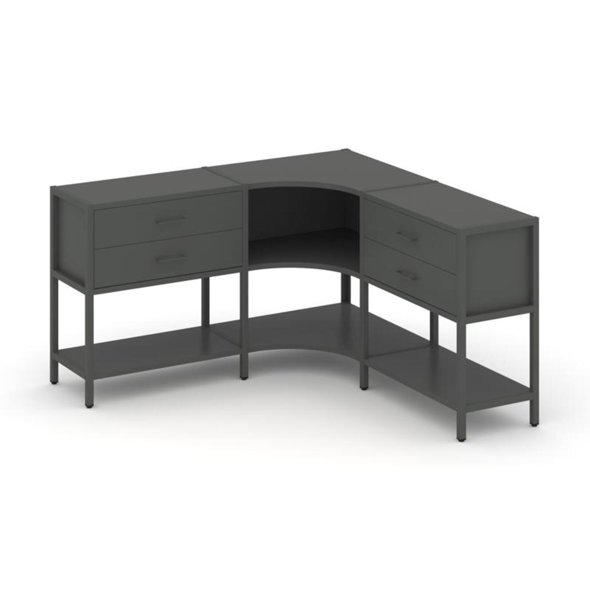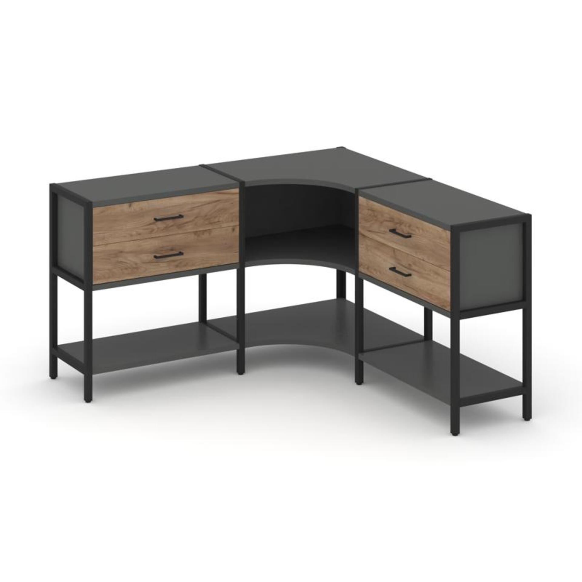 Трехсекционный угловой стеллаж двухярусный с ящиками SN.STMU-231
