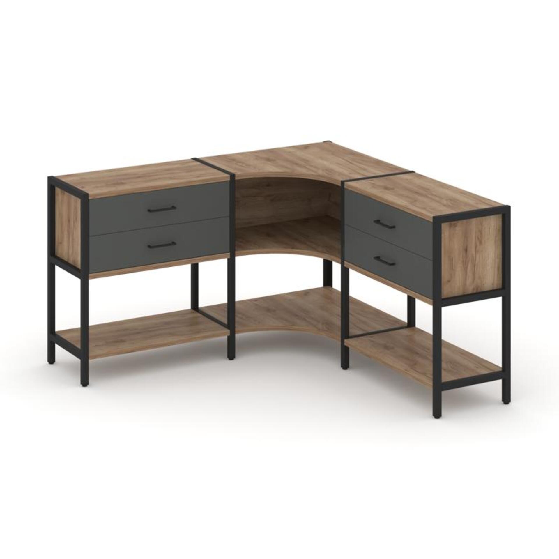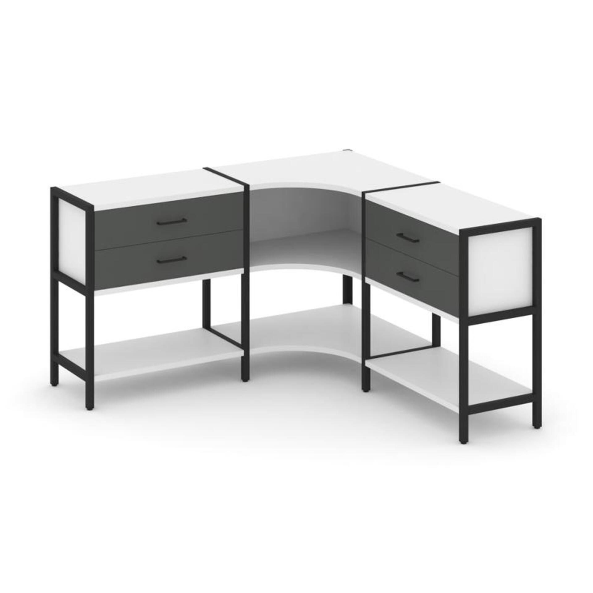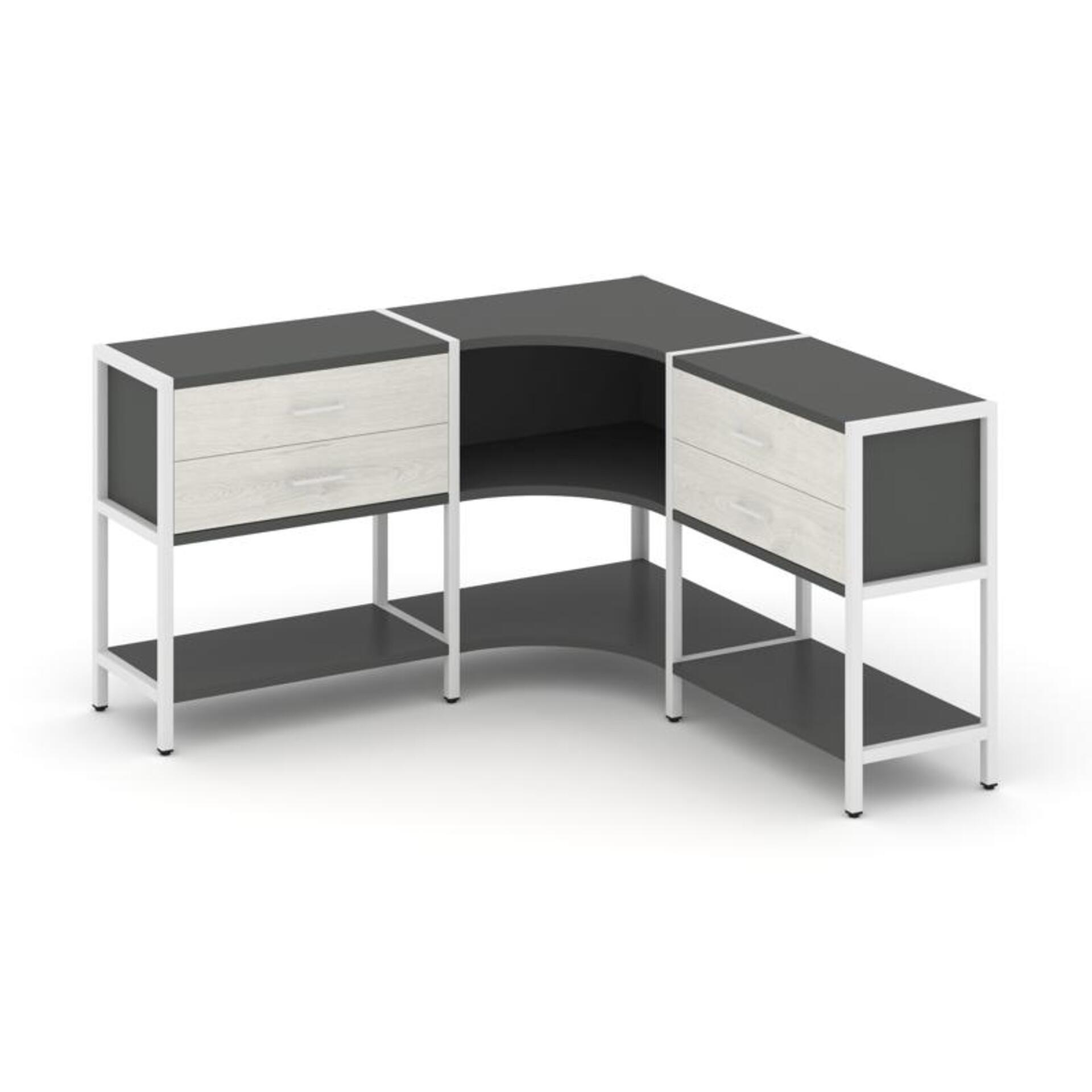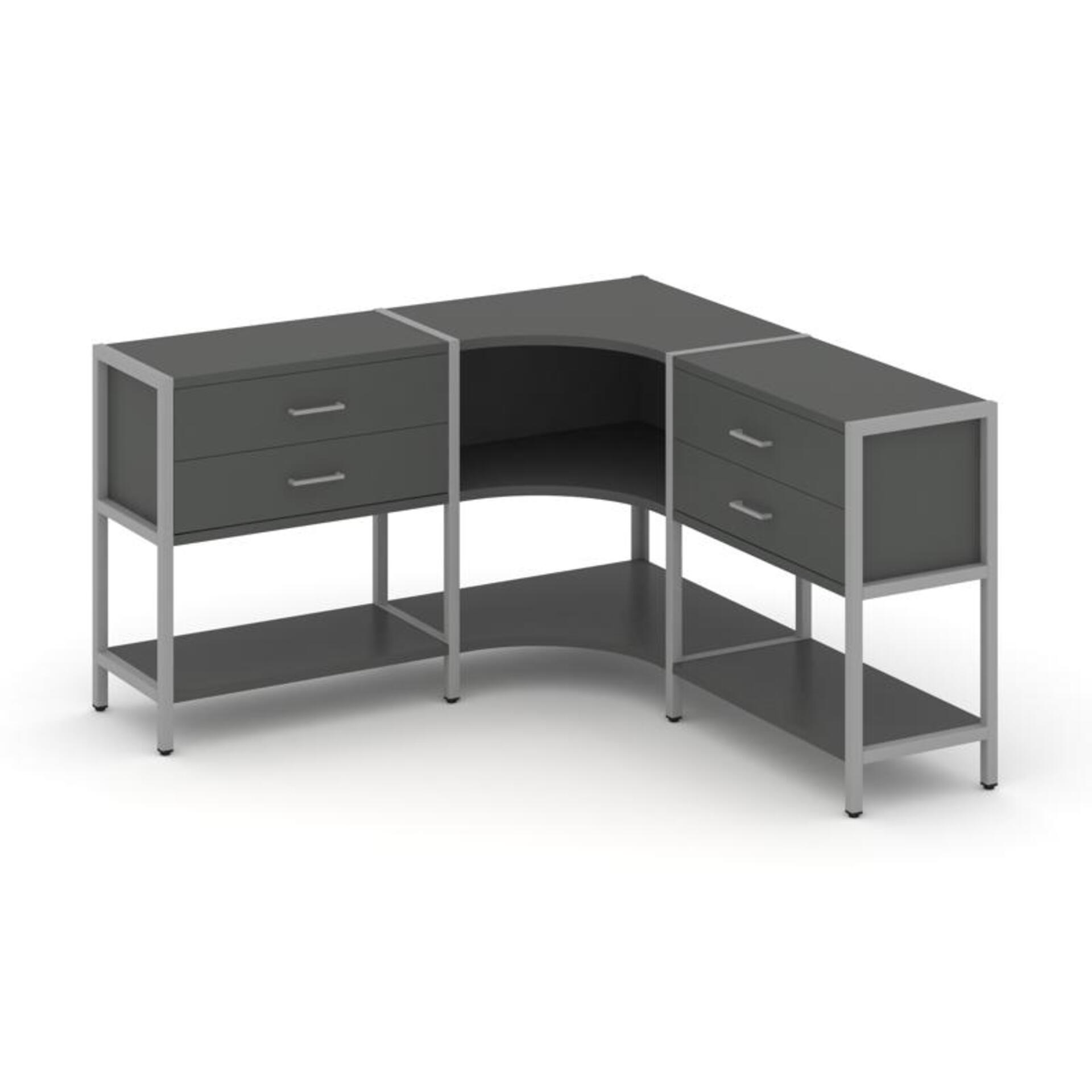 Трехсекционный угловой стеллаж двухярусный с ящиками SN.STMU-231