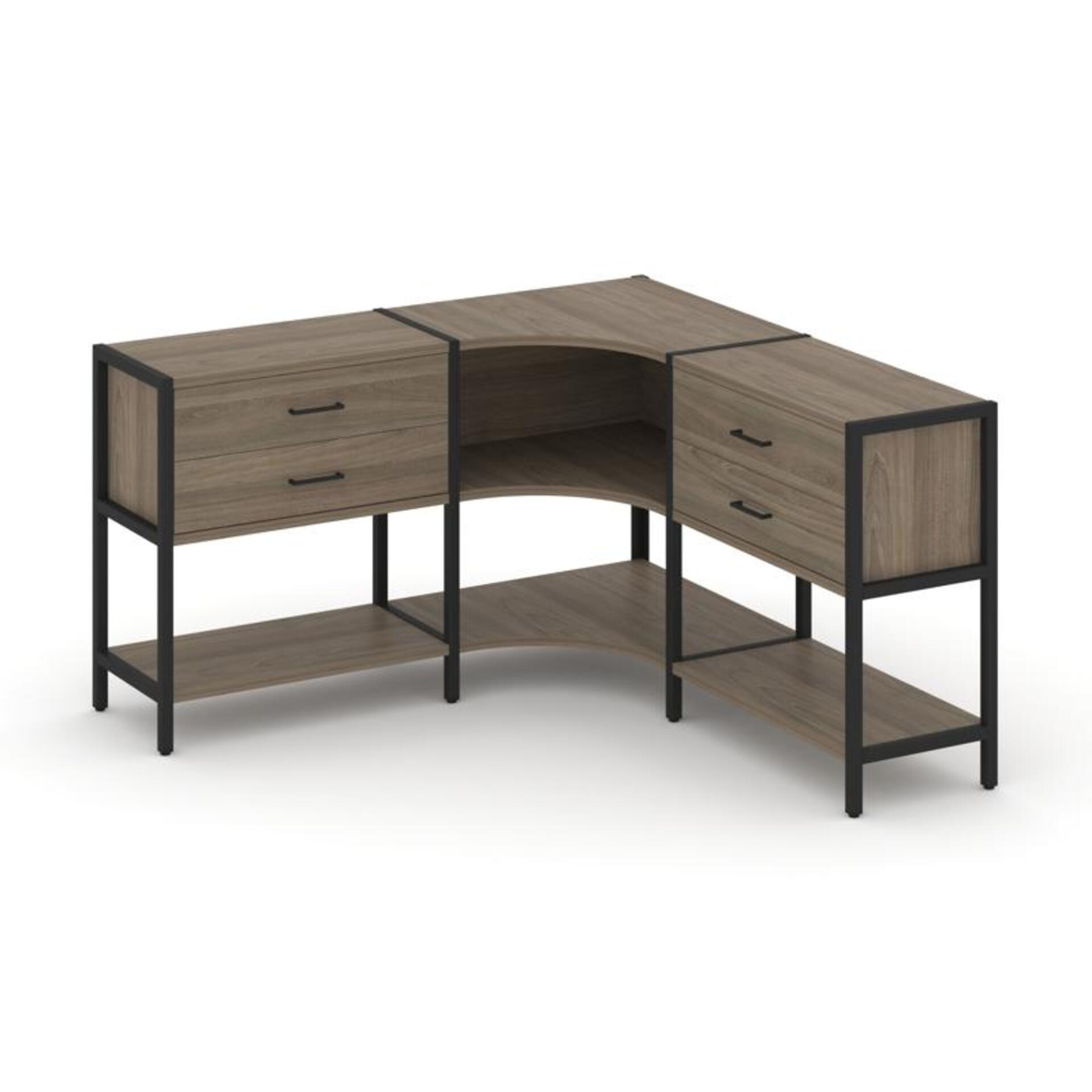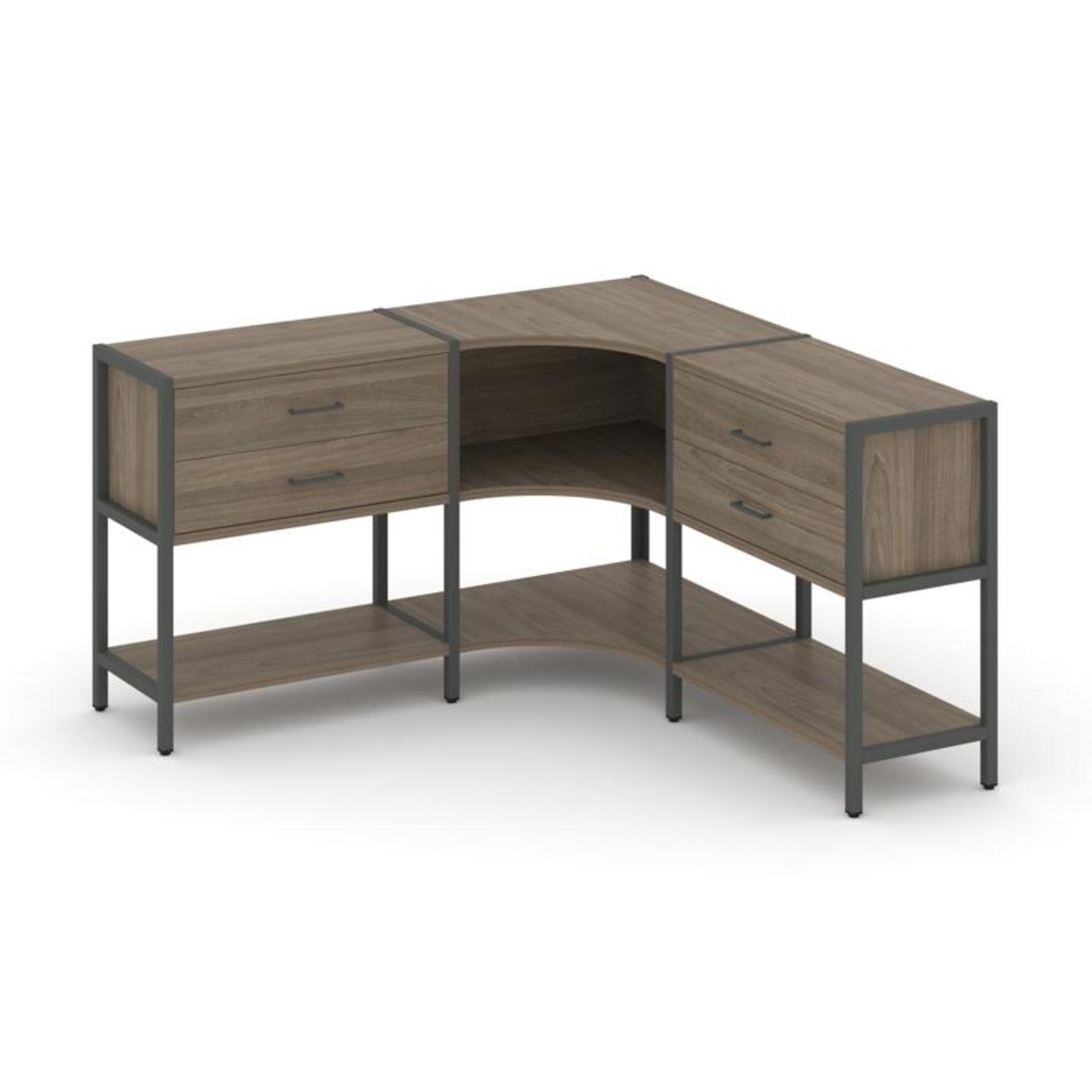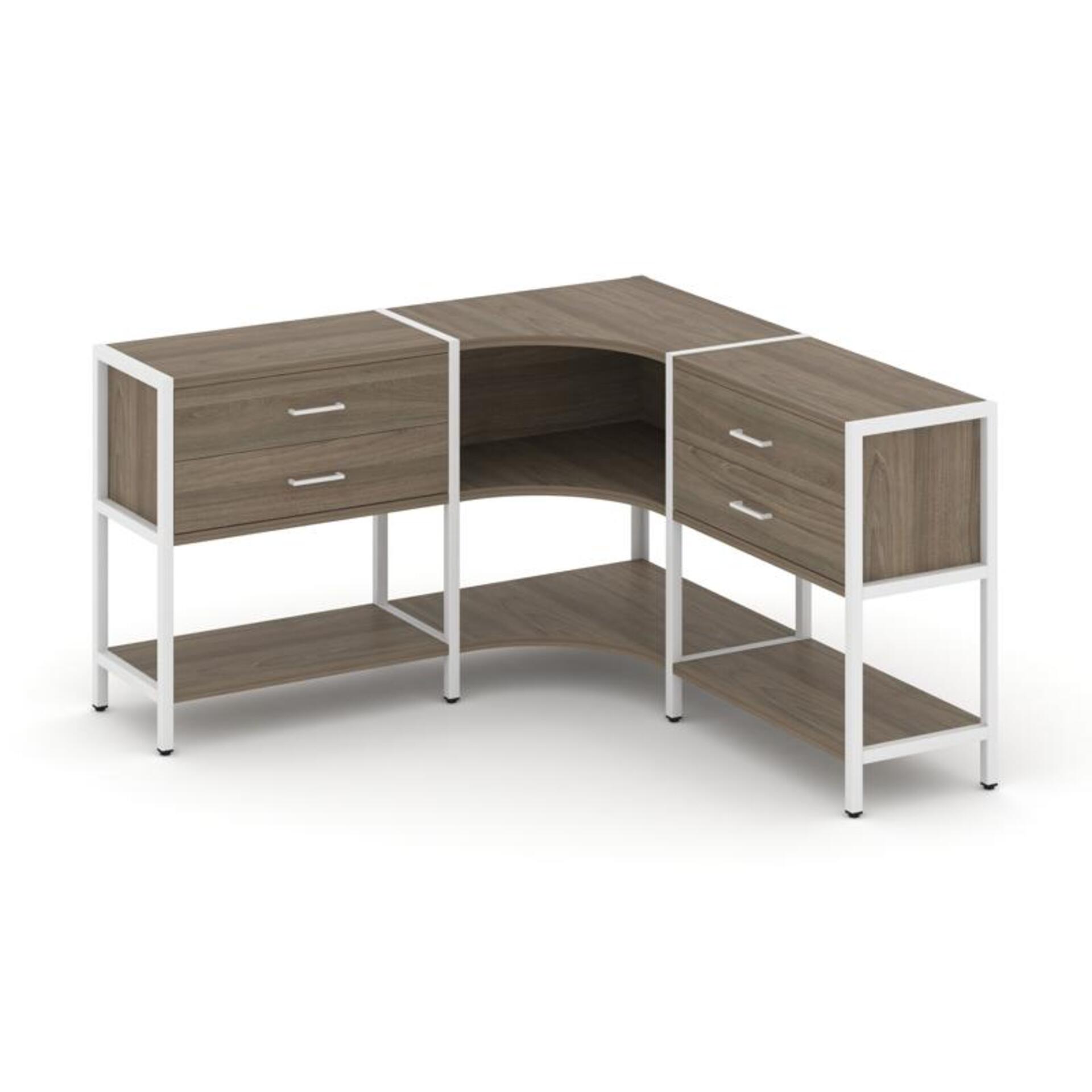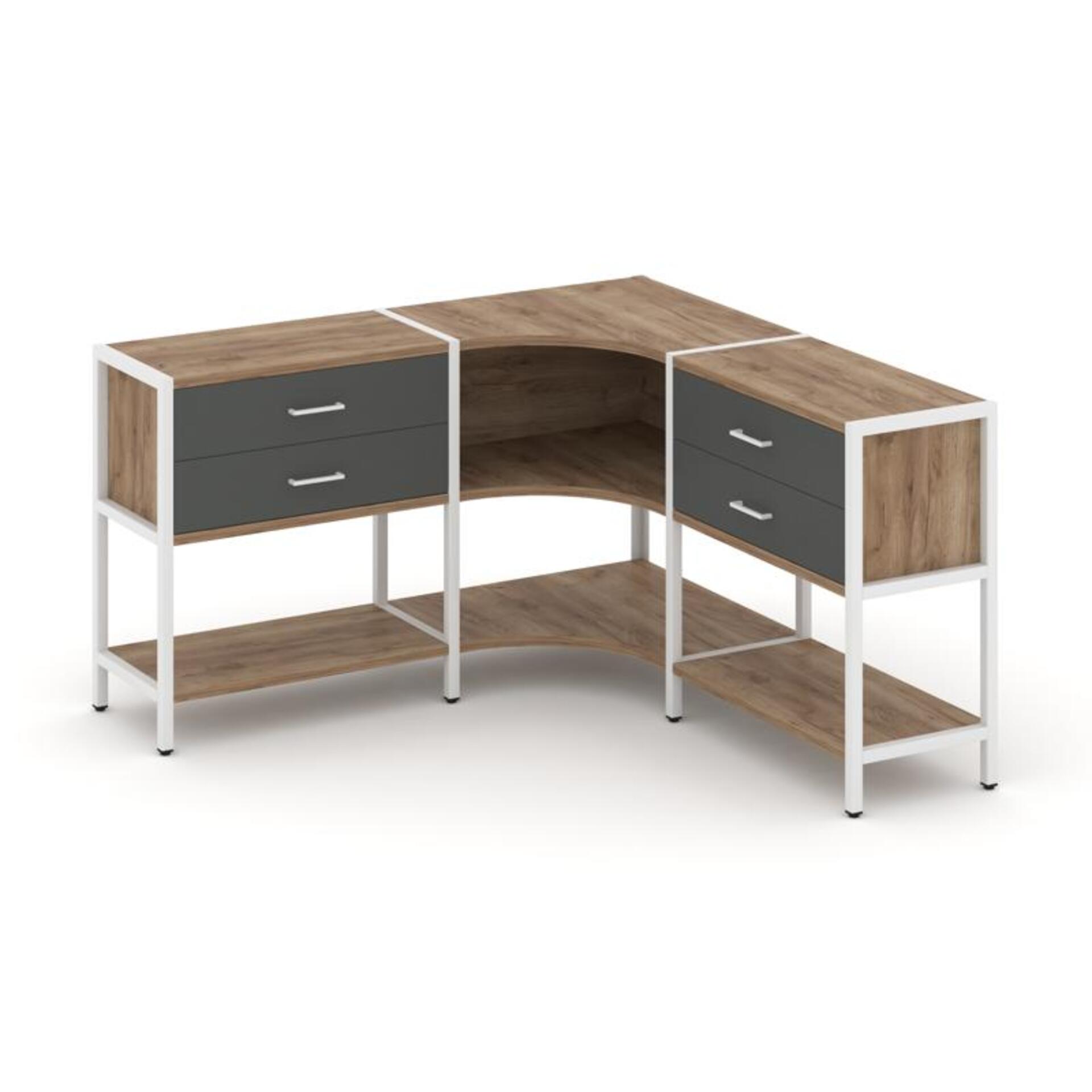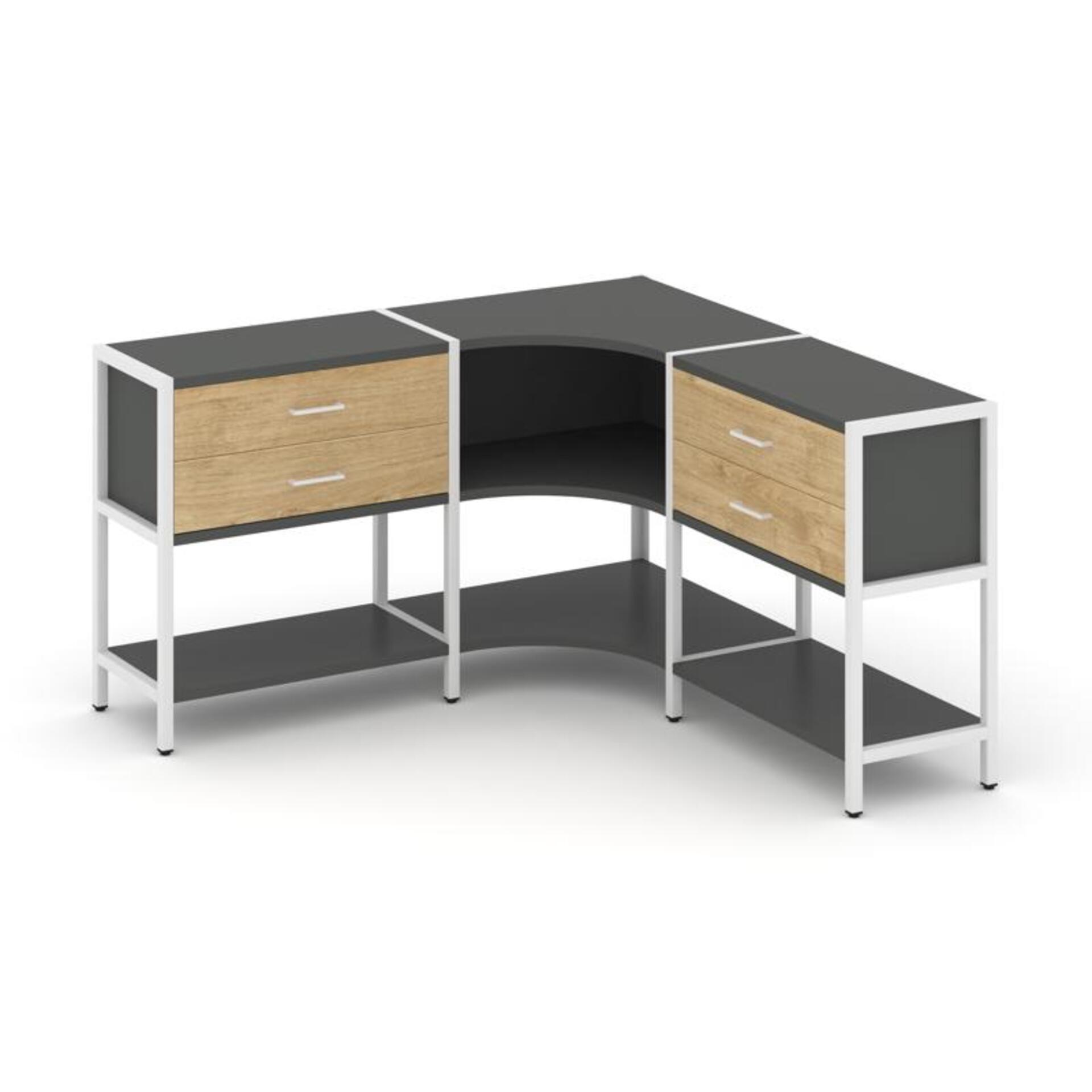 Трехсекционный угловой стеллаж двухярусный с ящиками SN.STMU-231