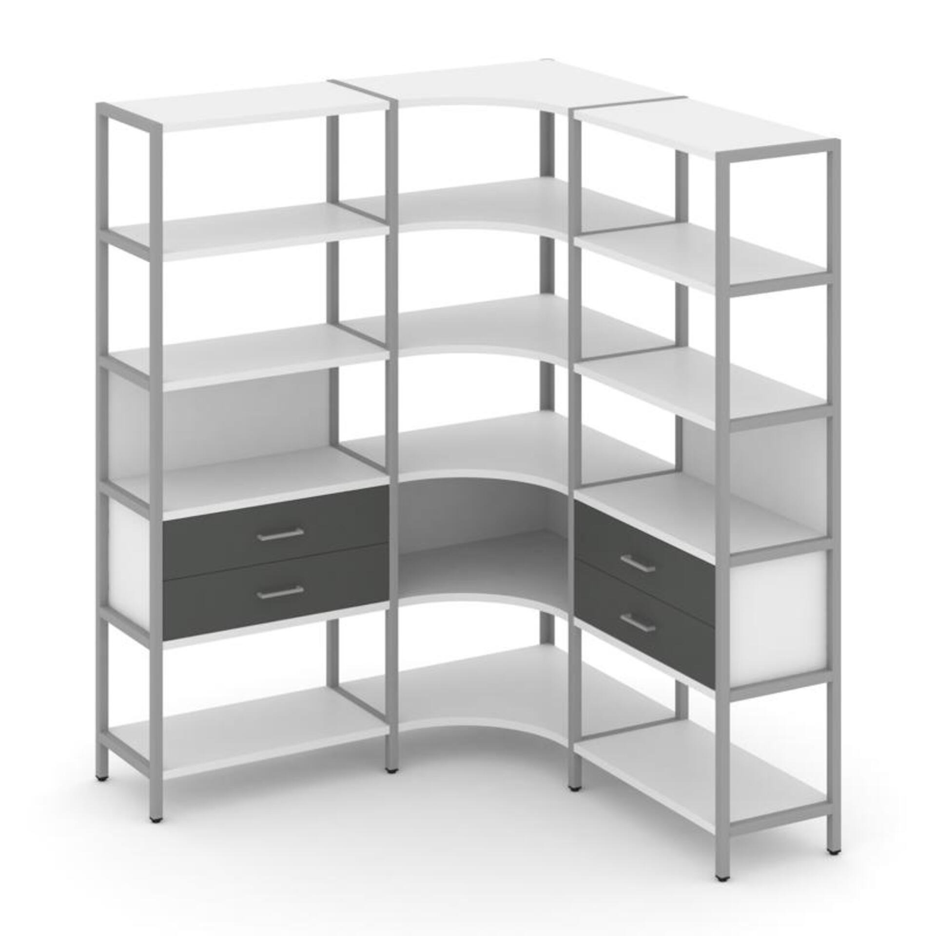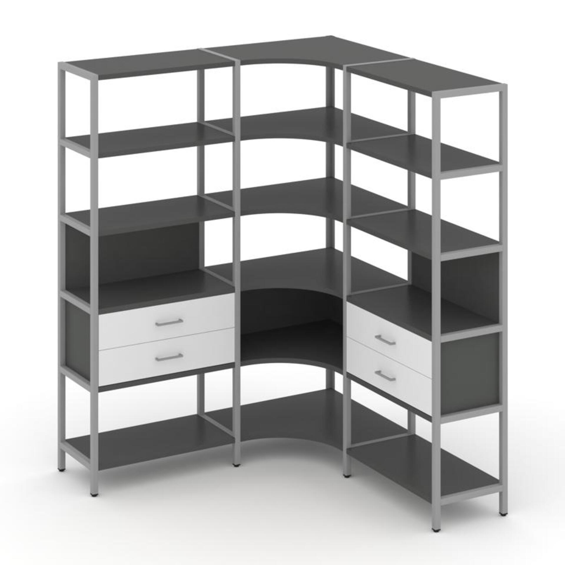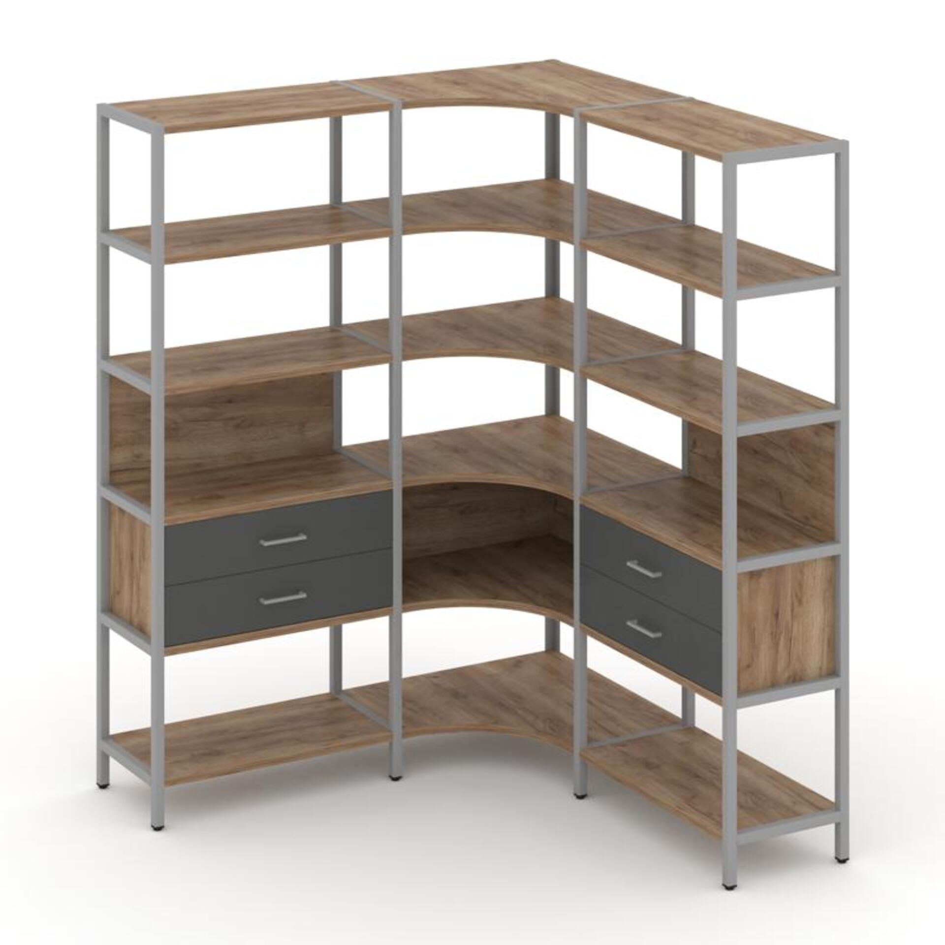 Трехсекционный угловой стеллаж пятиярусный с ящиками SN.STMU-531