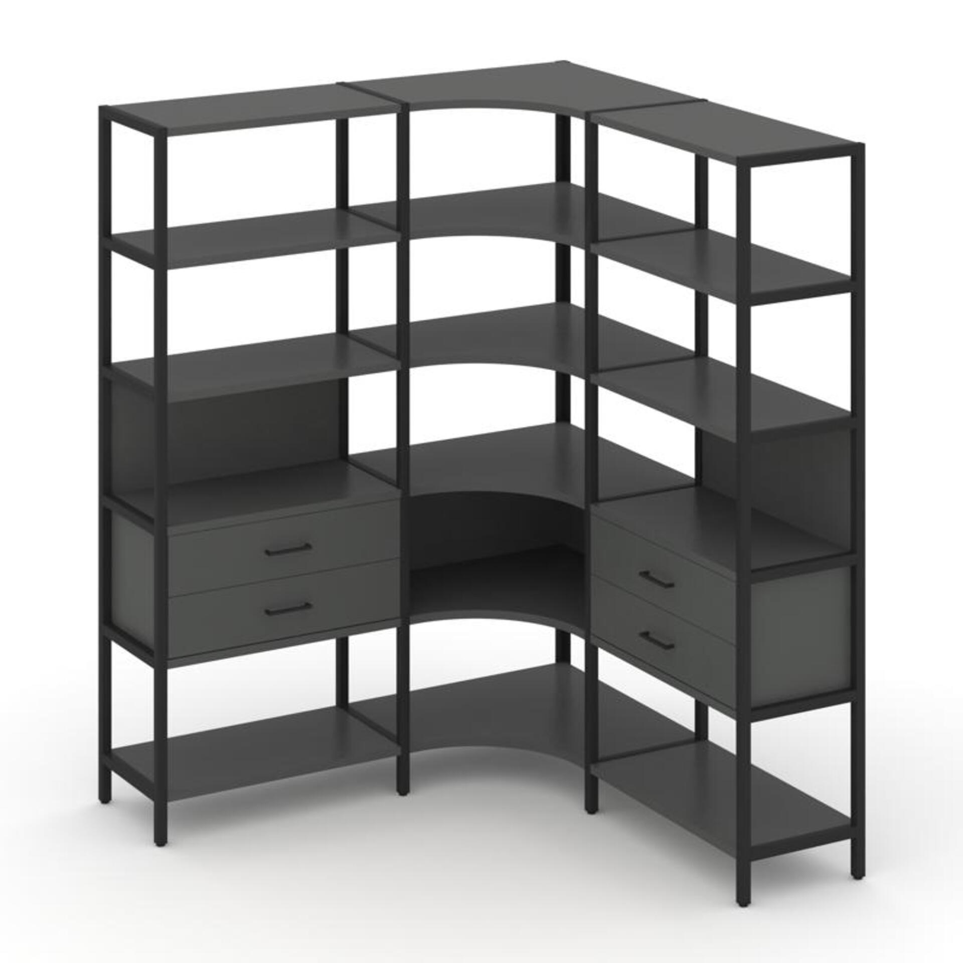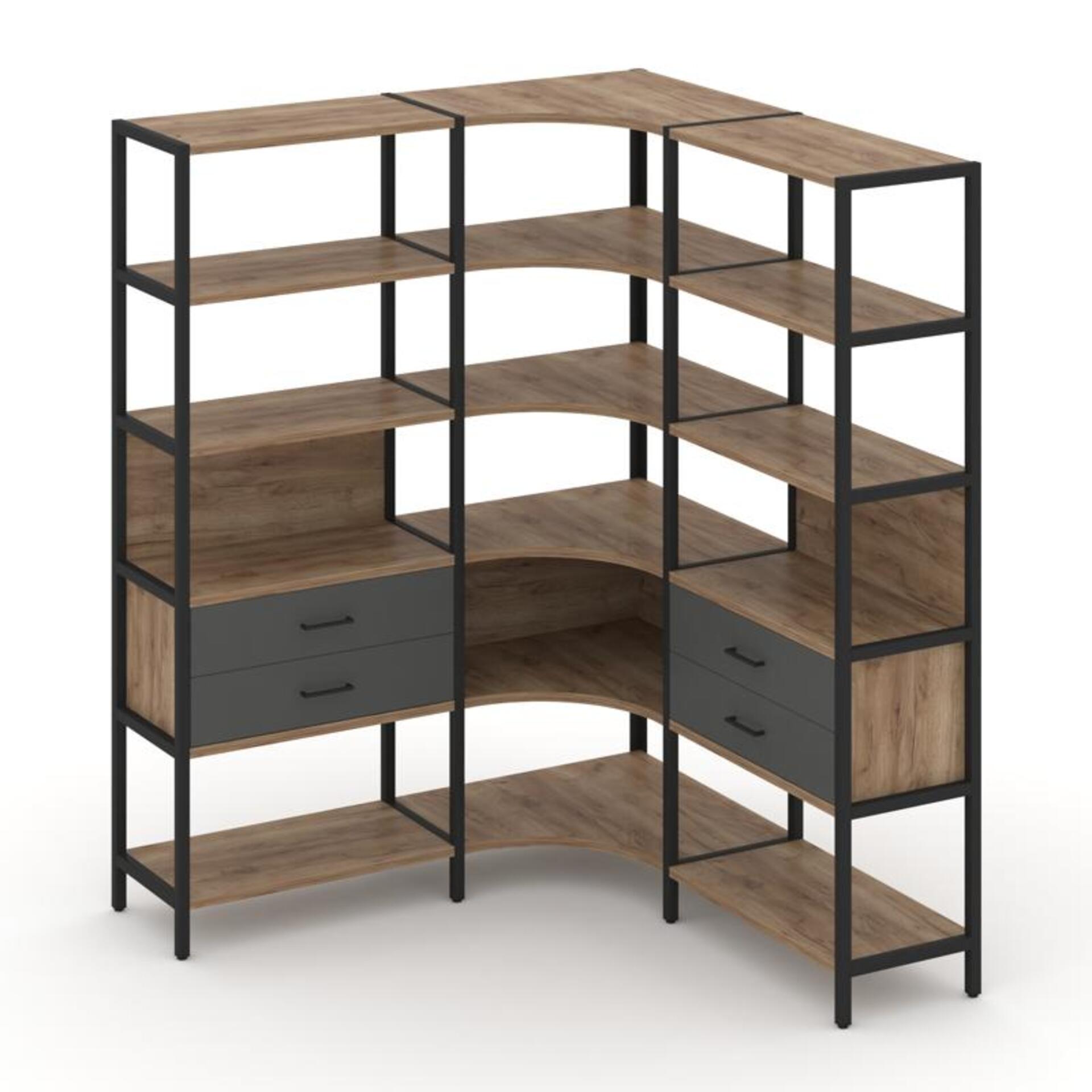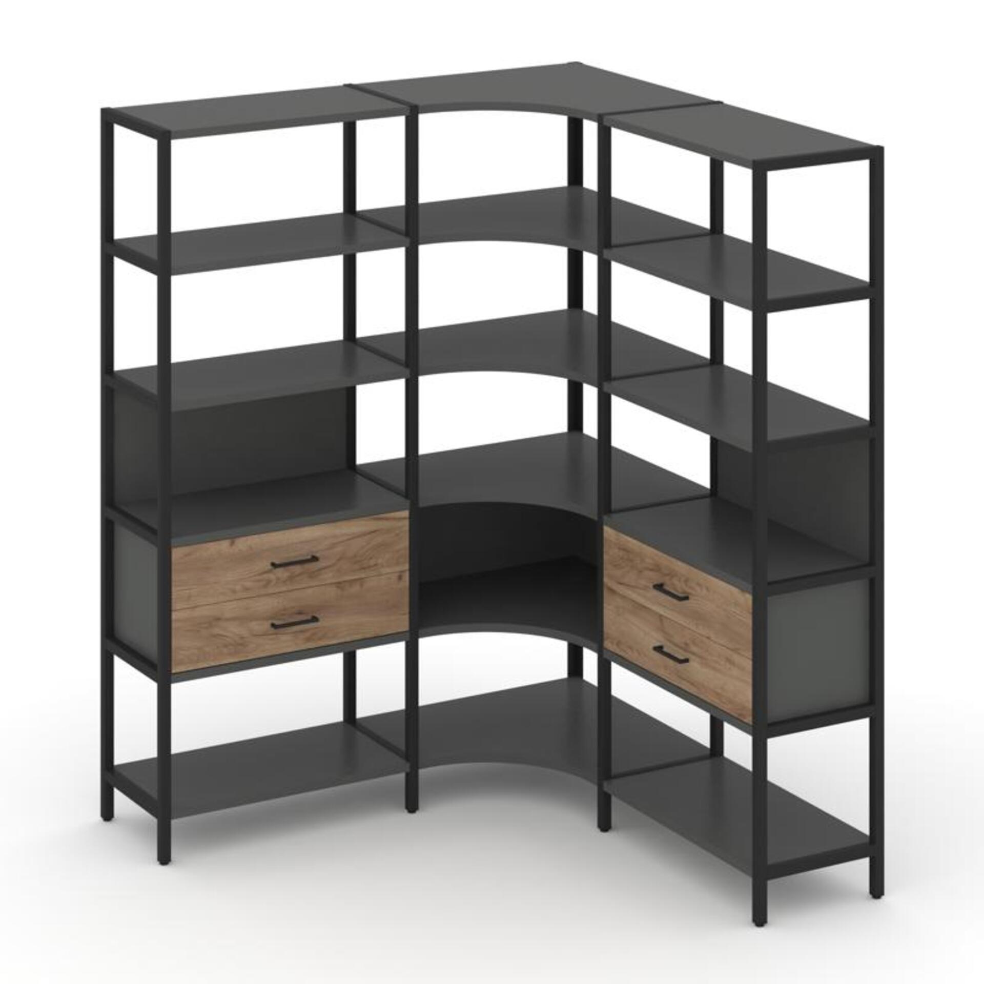 Трехсекционный угловой стеллаж пятиярусный с ящиками SN.STMU-531