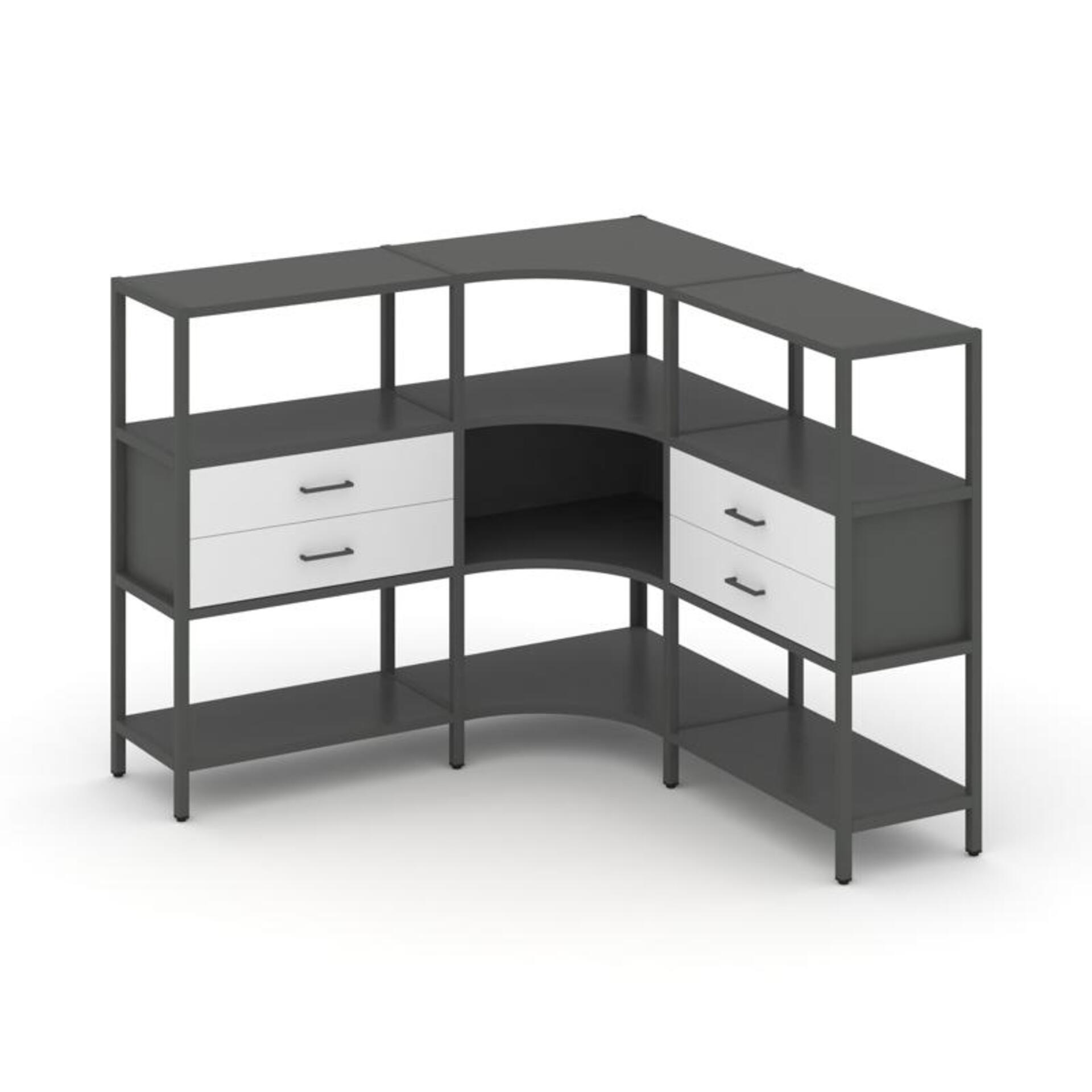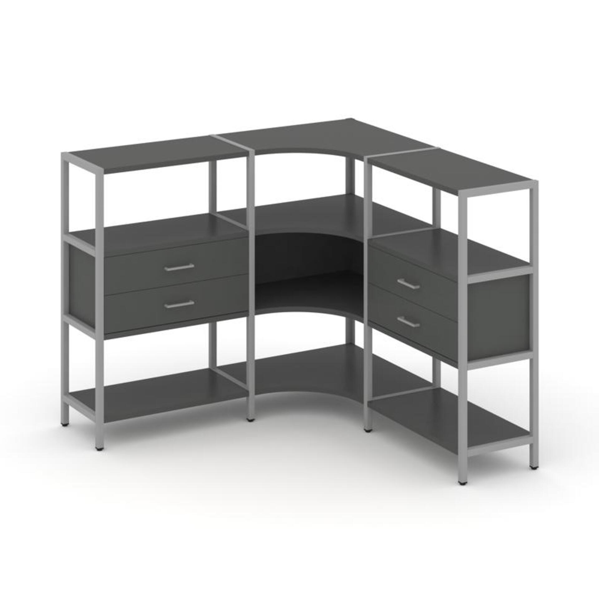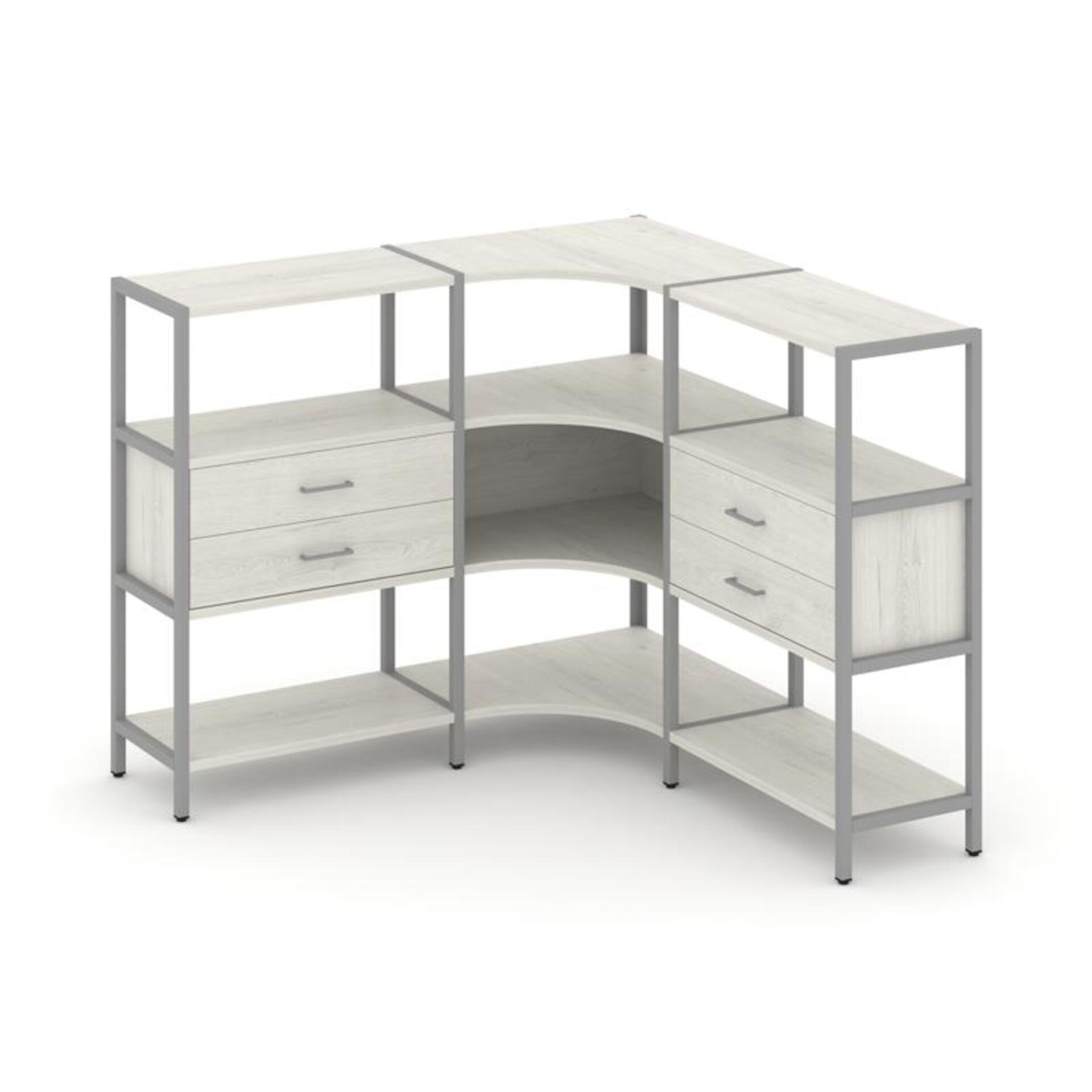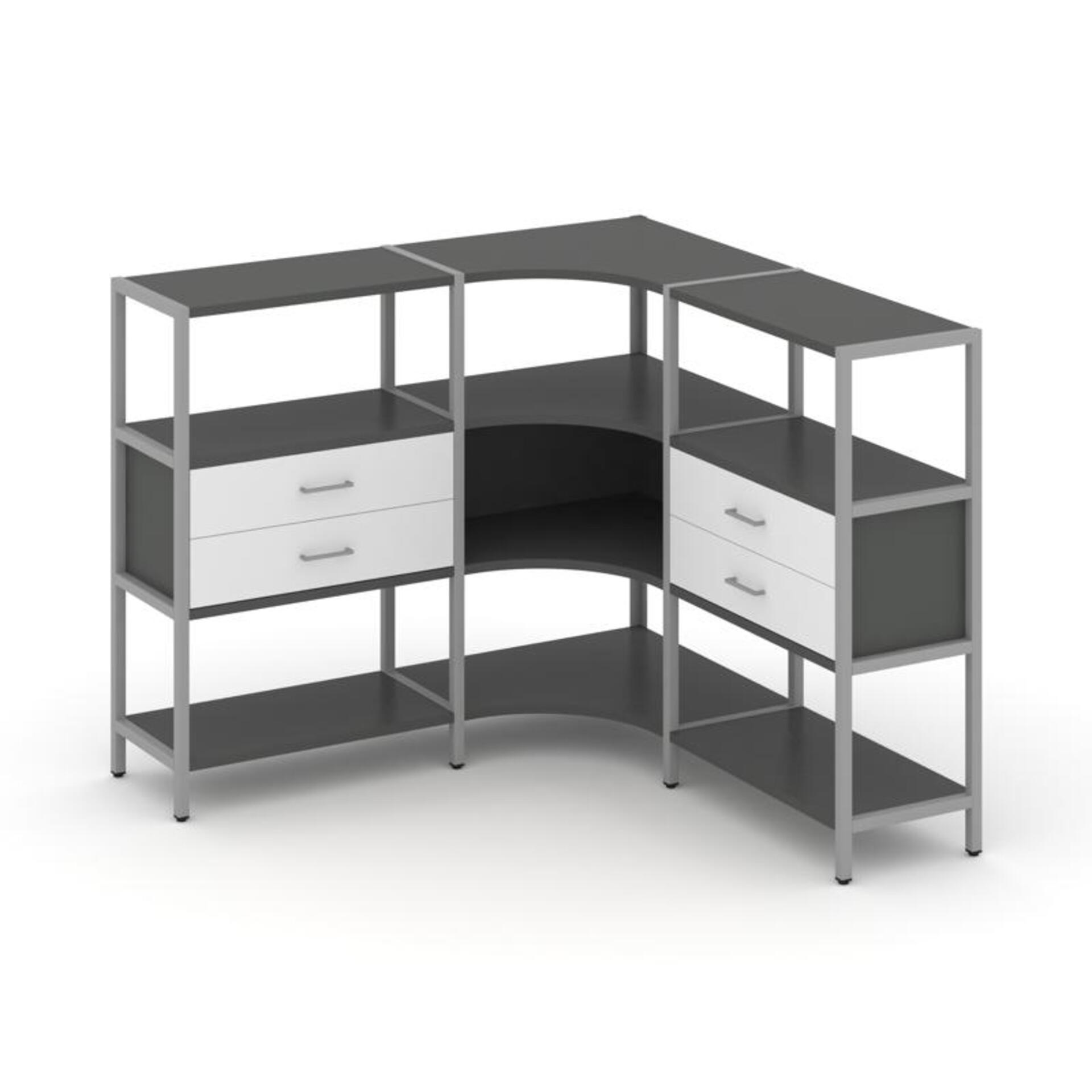Трехсекционный угловой стеллаж трехярусный с ящиками SN.STMU-331