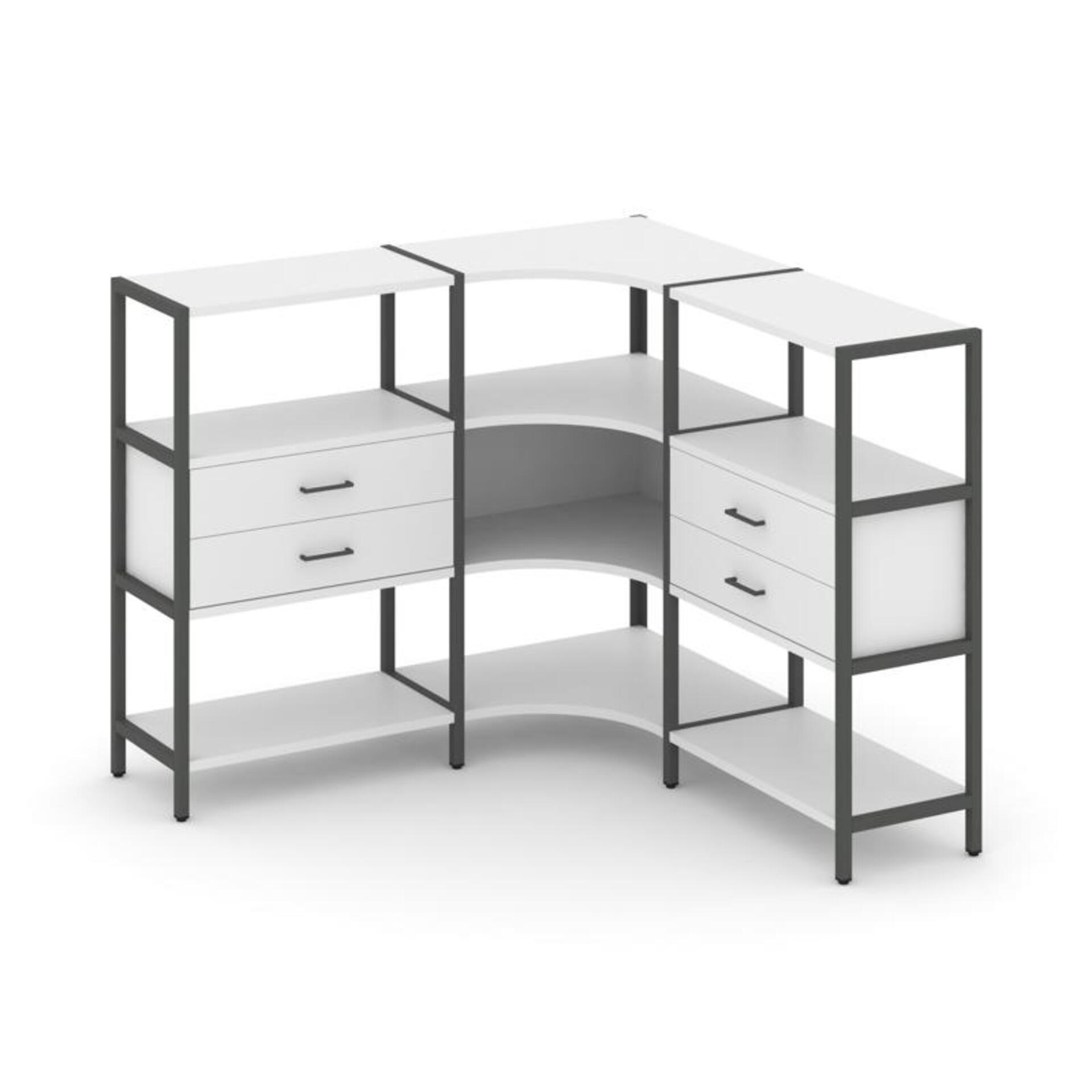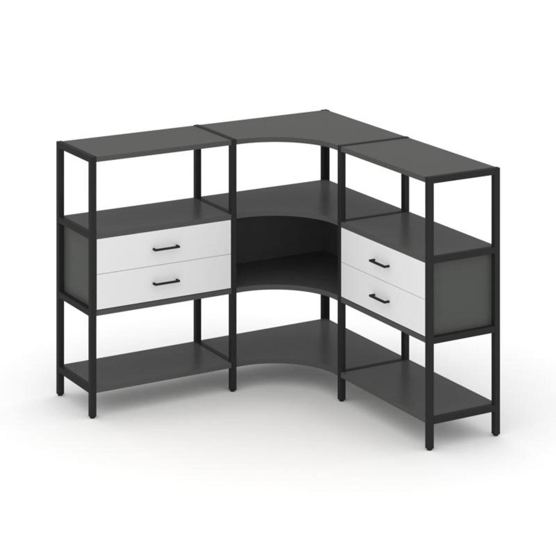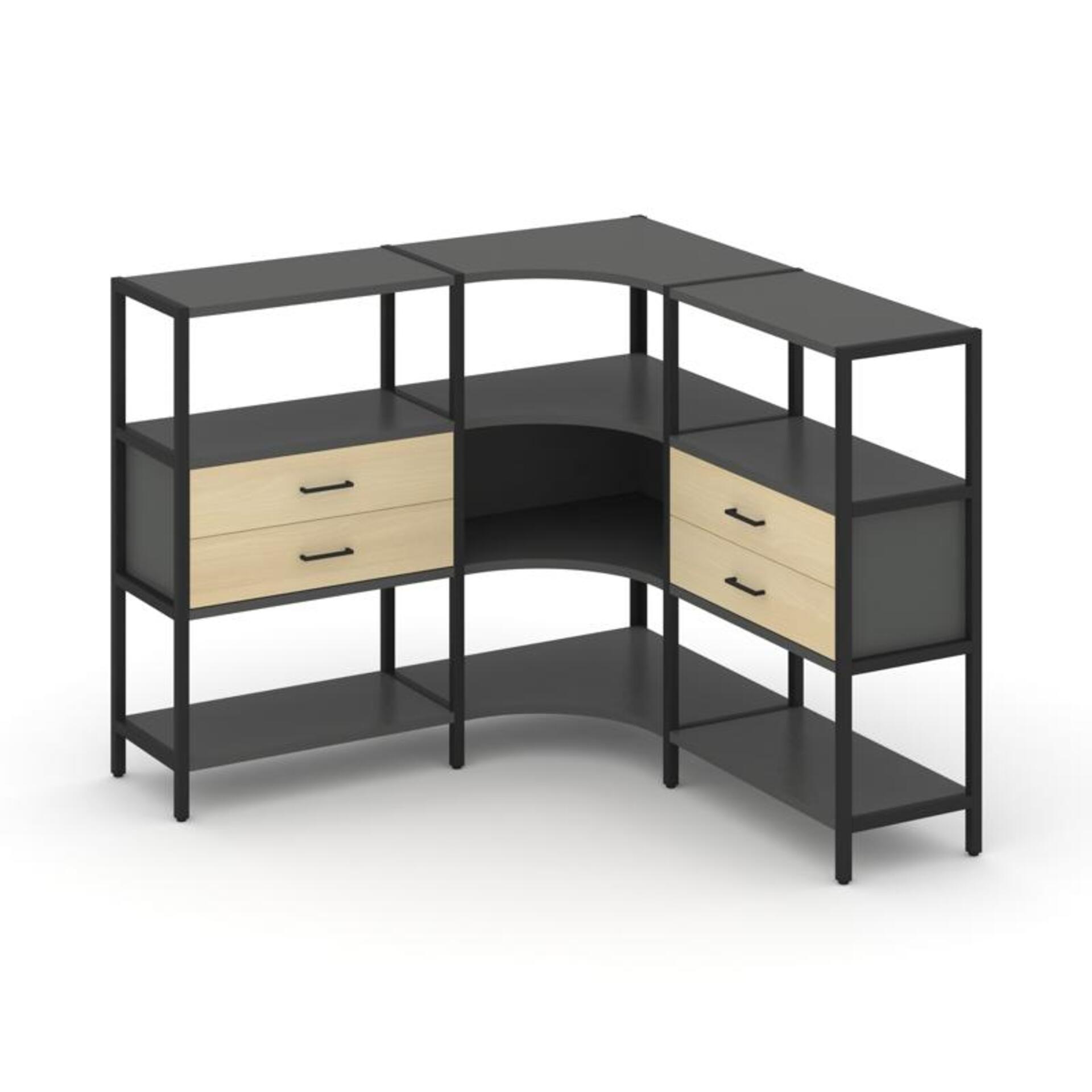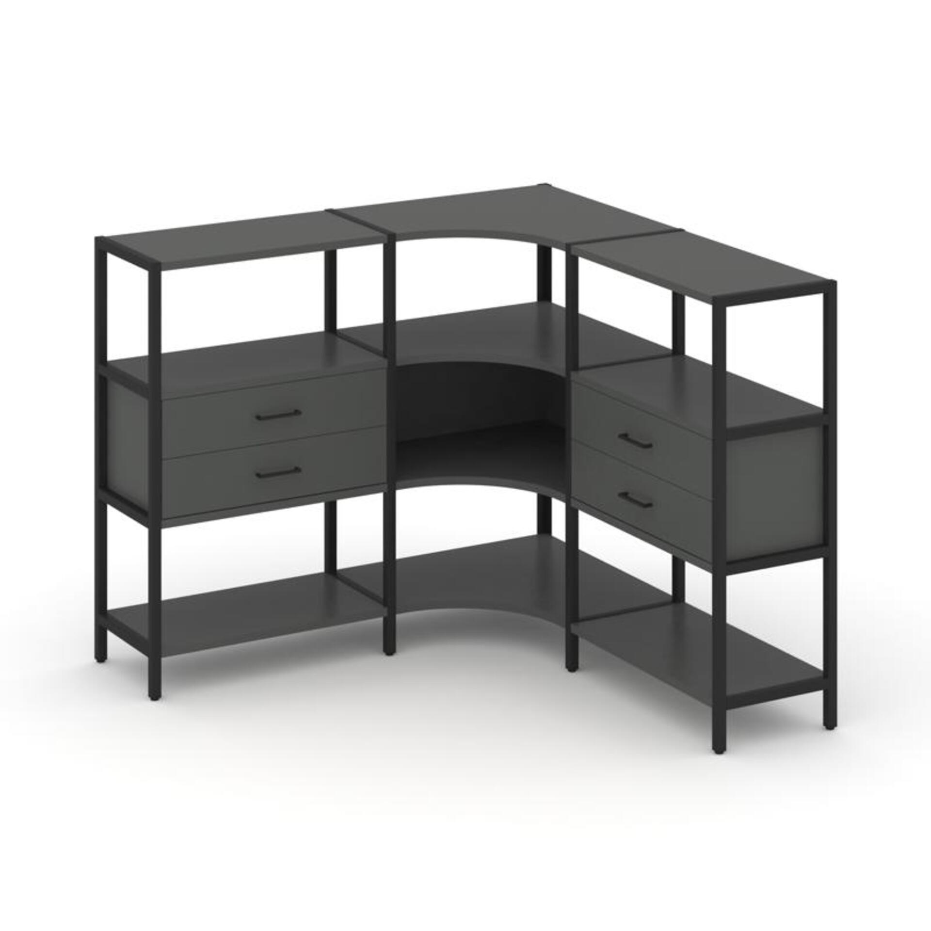 Трехсекционный угловой стеллаж трехярусный с ящиками SN.STMU-331