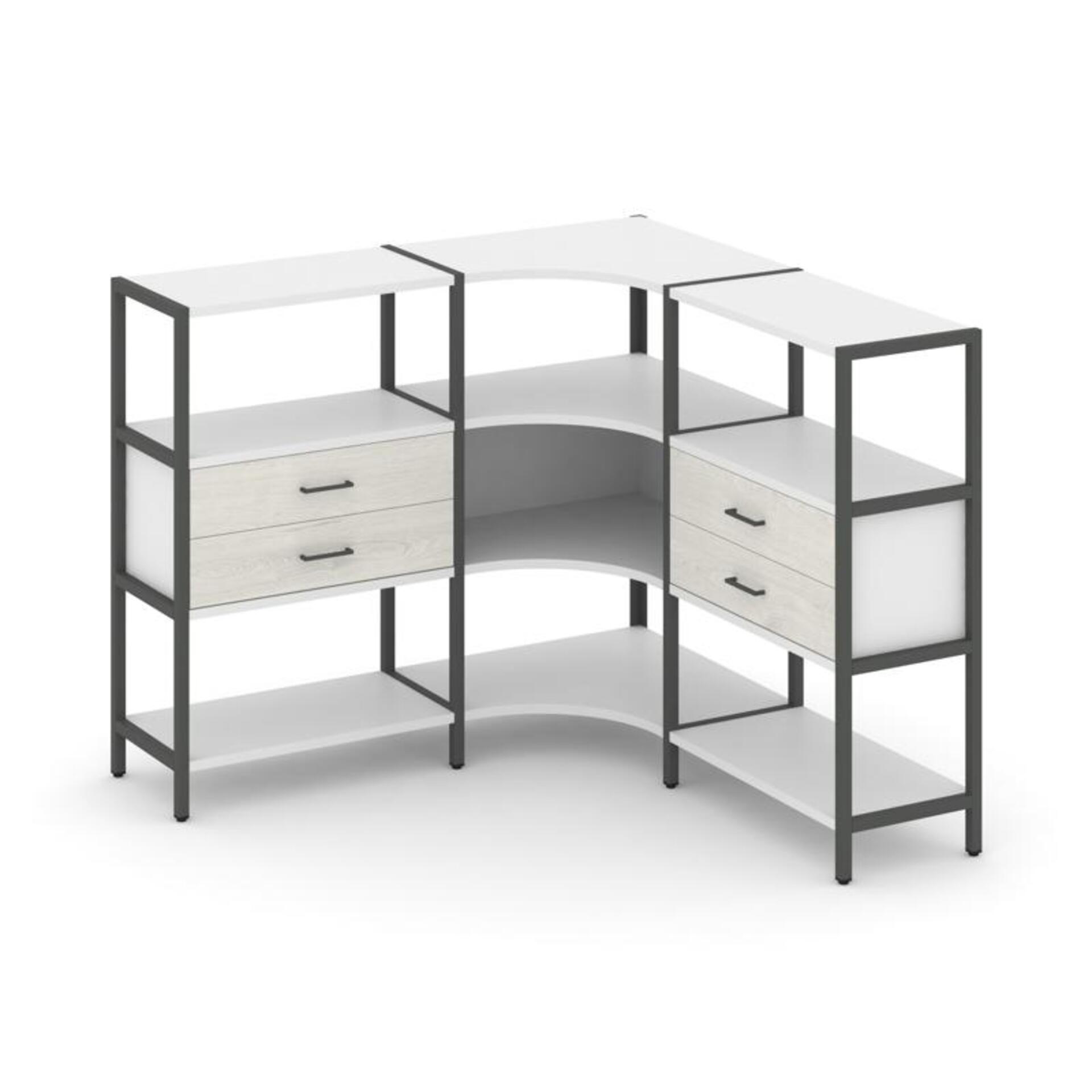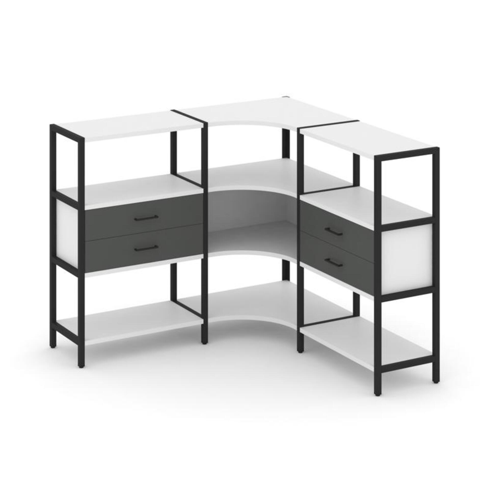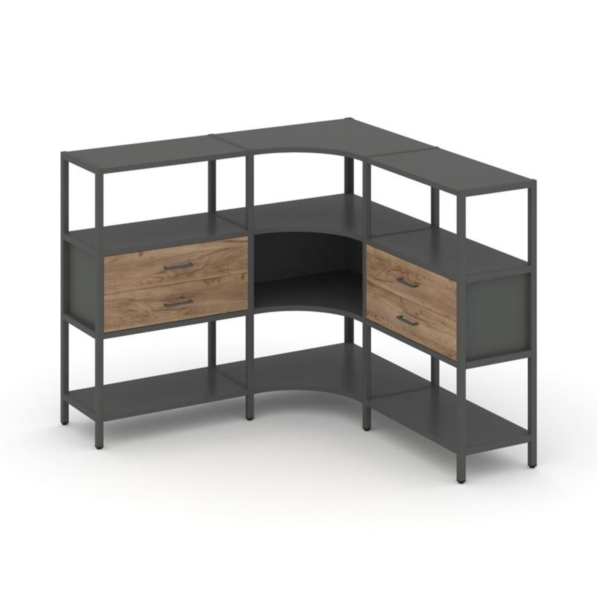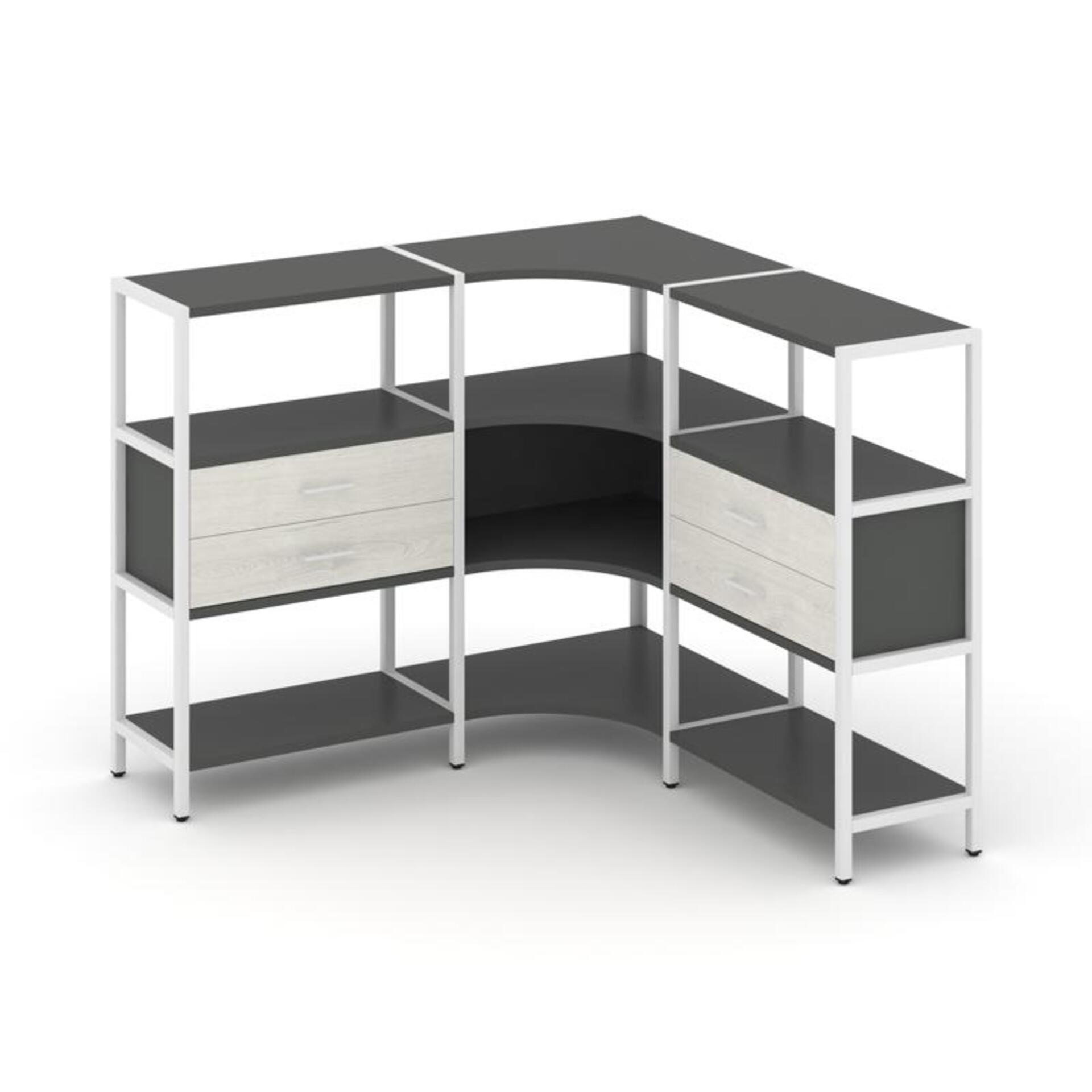 Трехсекционный угловой стеллаж трехярусный с ящиками SN.STMU-331