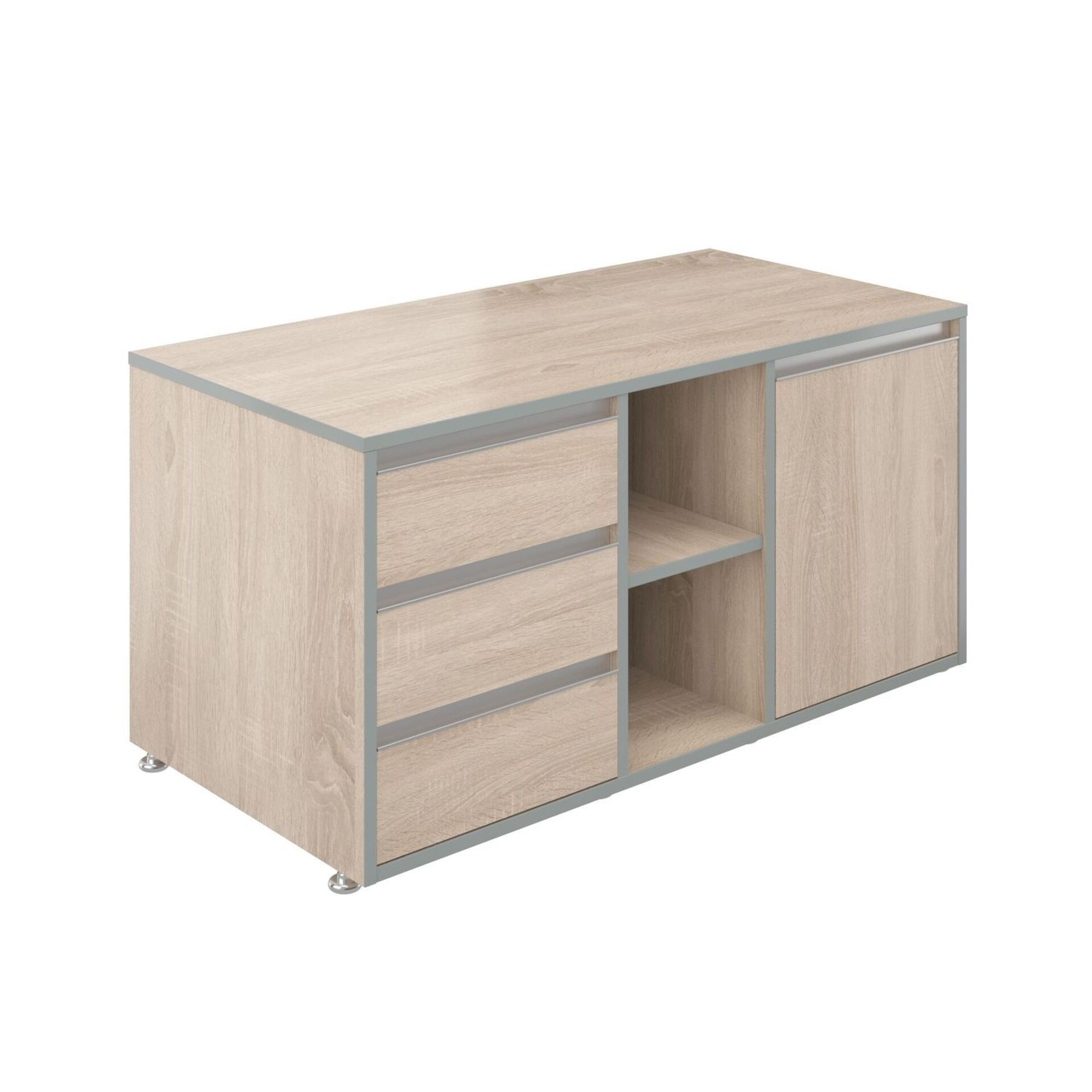 Стол рабочий на опорной двусоставной тумбе, с ящиками, с замком 15СОД-ШД.1810