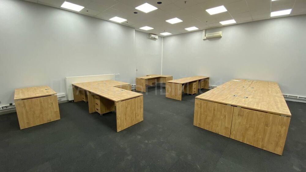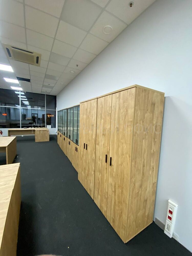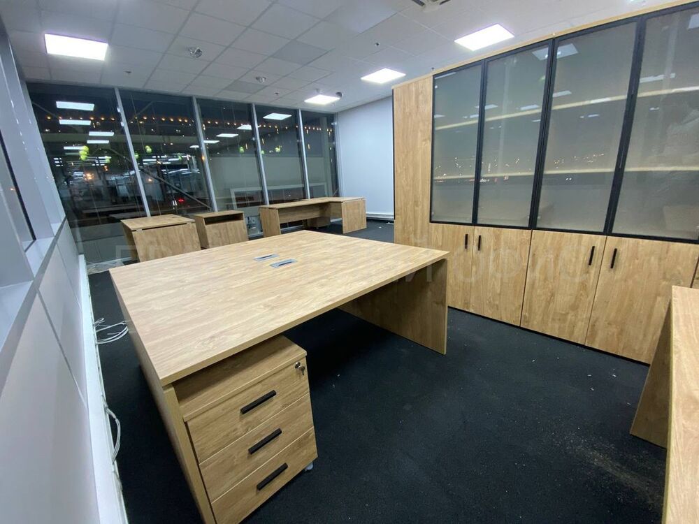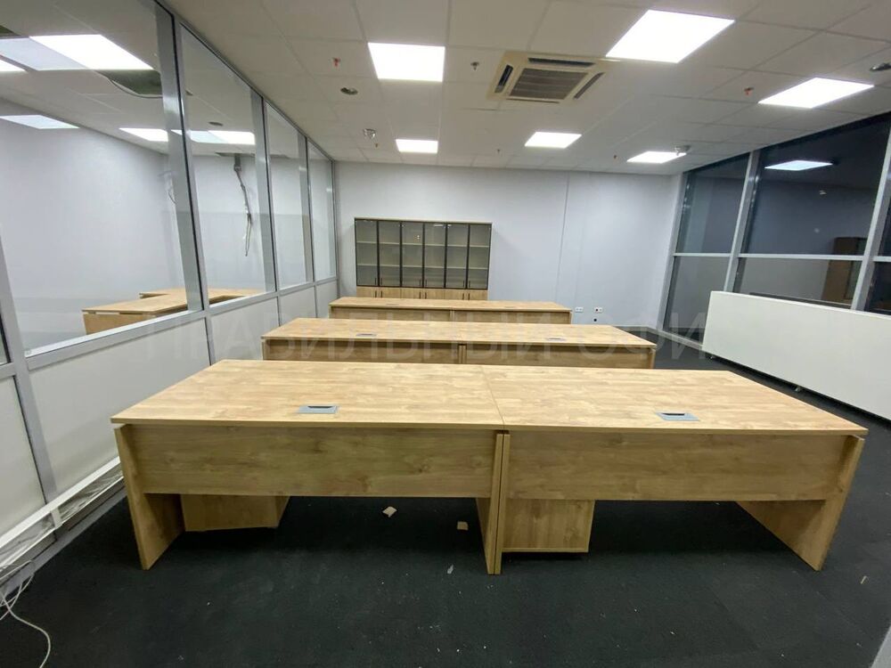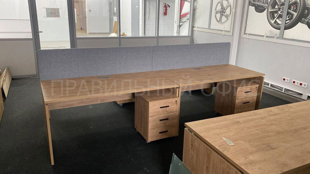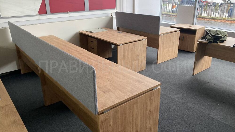 Для оснащения новых рабочих мест была выбрана качественная серия мебели Onix на опорах ЛДСП в цвете Тиквуд Светлый. Эта серия известна своей прочностью, привлекательным дизайном и функциональностью. Однако уникальность данного проекта заключается в индивидуальных изменениях, предложенных заказчиками. На основании предпочтений руководства был принят ряд решений для улучшения внешнего вида и удобства мебели.
