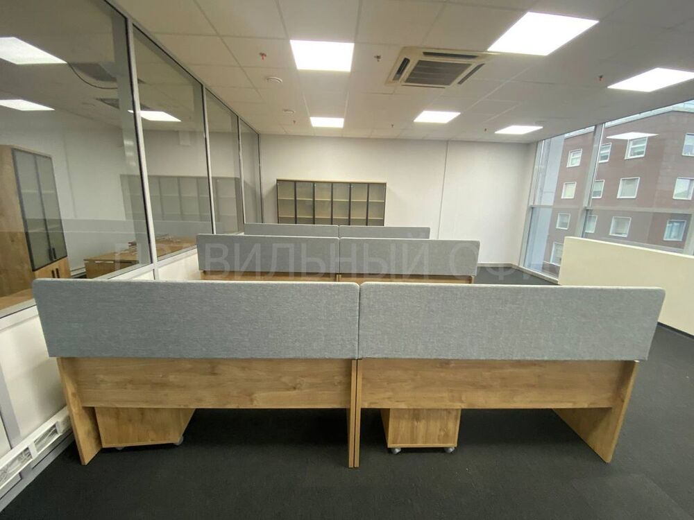 В качестве дополнения к рабочим столам были выбраны тканевые экраны из коллекции Concept в цвете Romeo, которые идеально устанавливаются вровень со столешницами, обеспечивая тем самым современный и аккуратный вид офисного пространства.